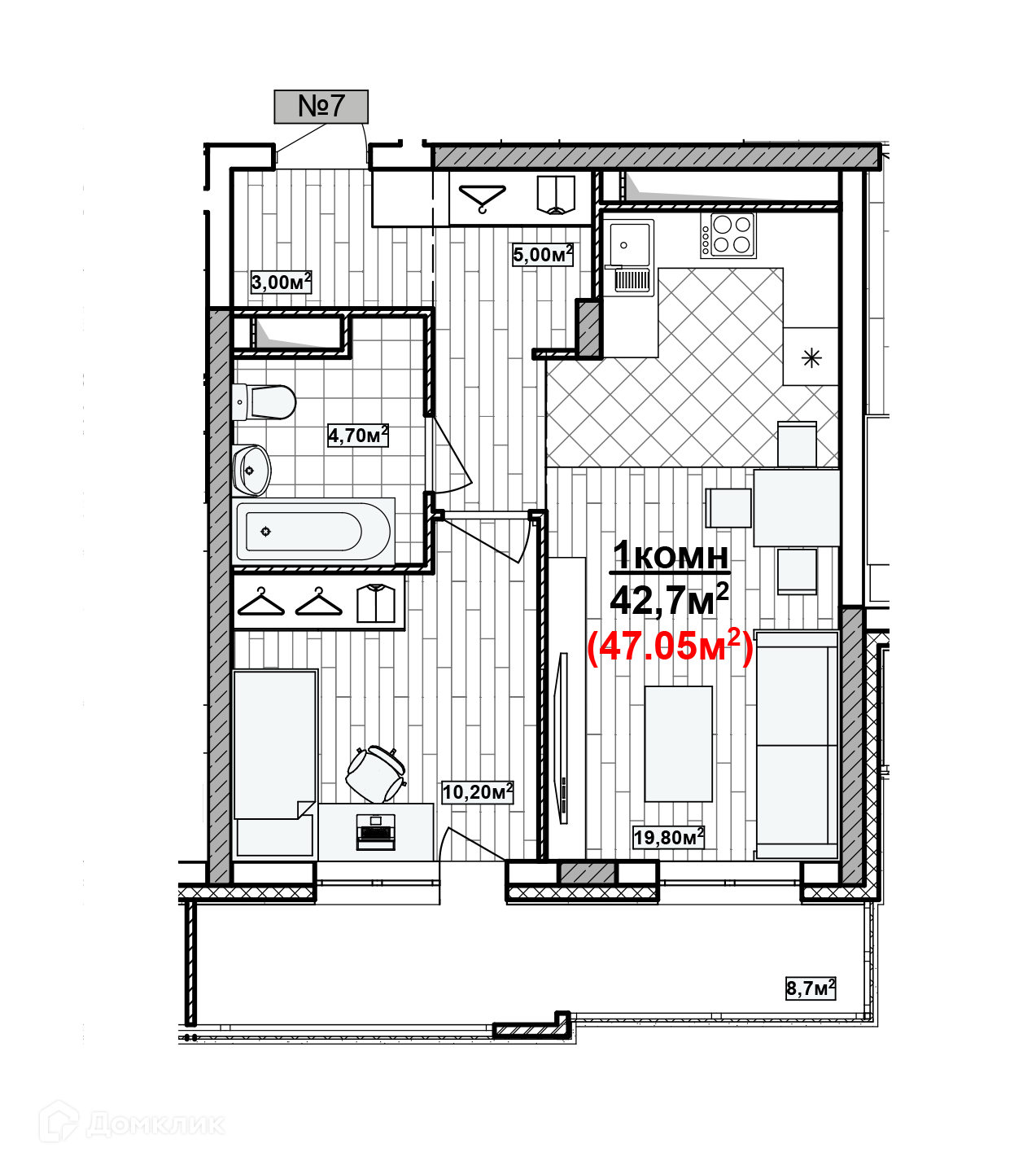 Общая площадь 47.05 м2