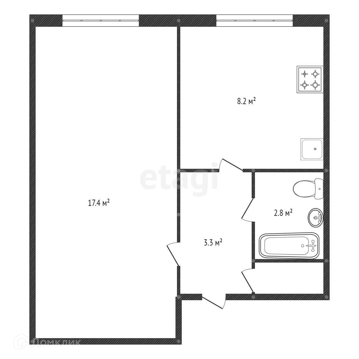 Общая площадь 33.2 м2