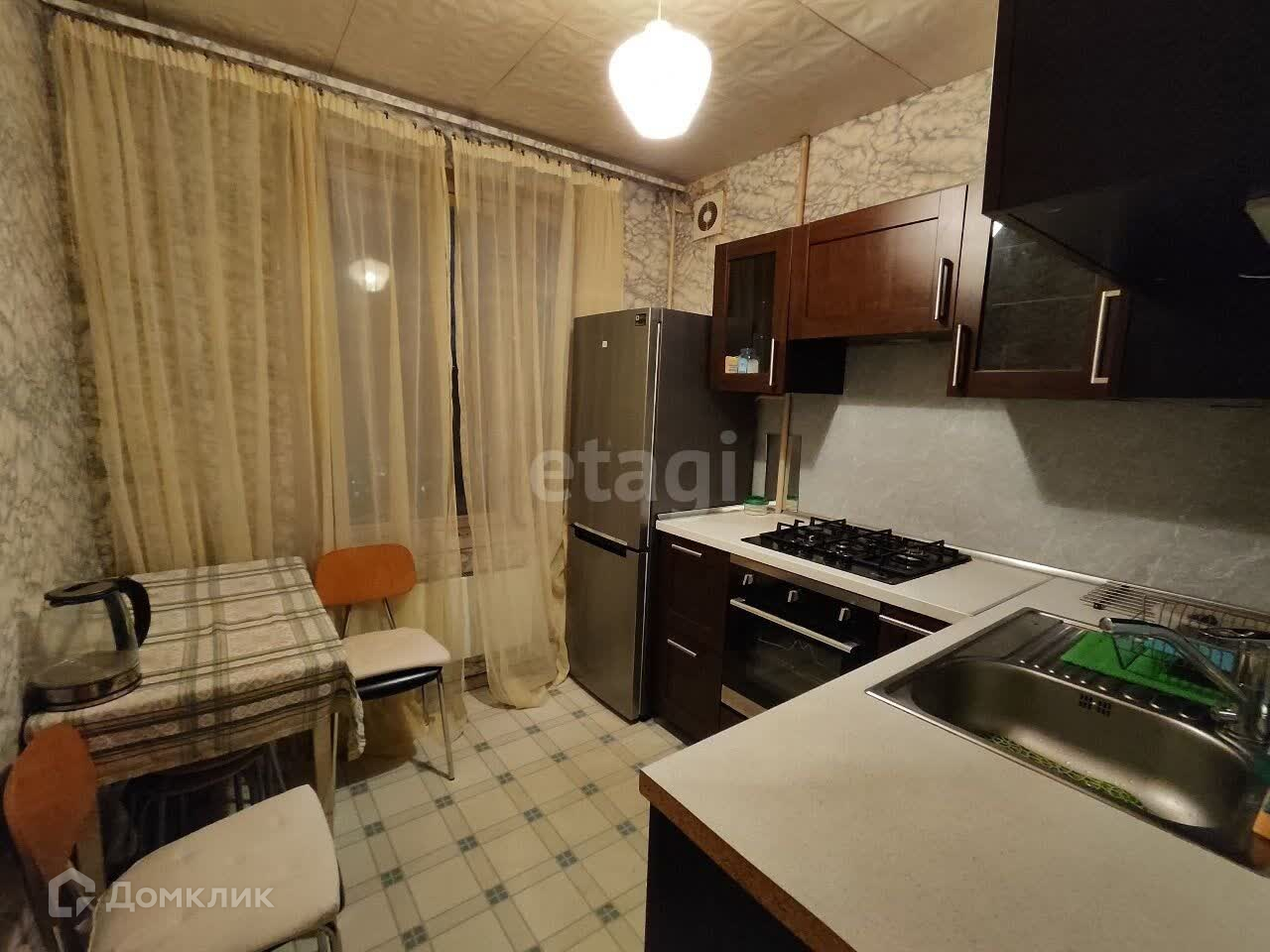 В квартире установлен пластиковый стеклопакет, 2 года назад поменяна проводка. Из мебели остается кухонный гарнитур. Полы выровнены, везде линолеум, кроме ванной. Все счетчики установлены, старые заменены, также 2 года назад.