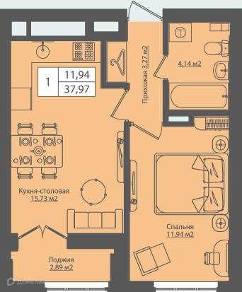Однокомнатная квартира для молодой семьи.