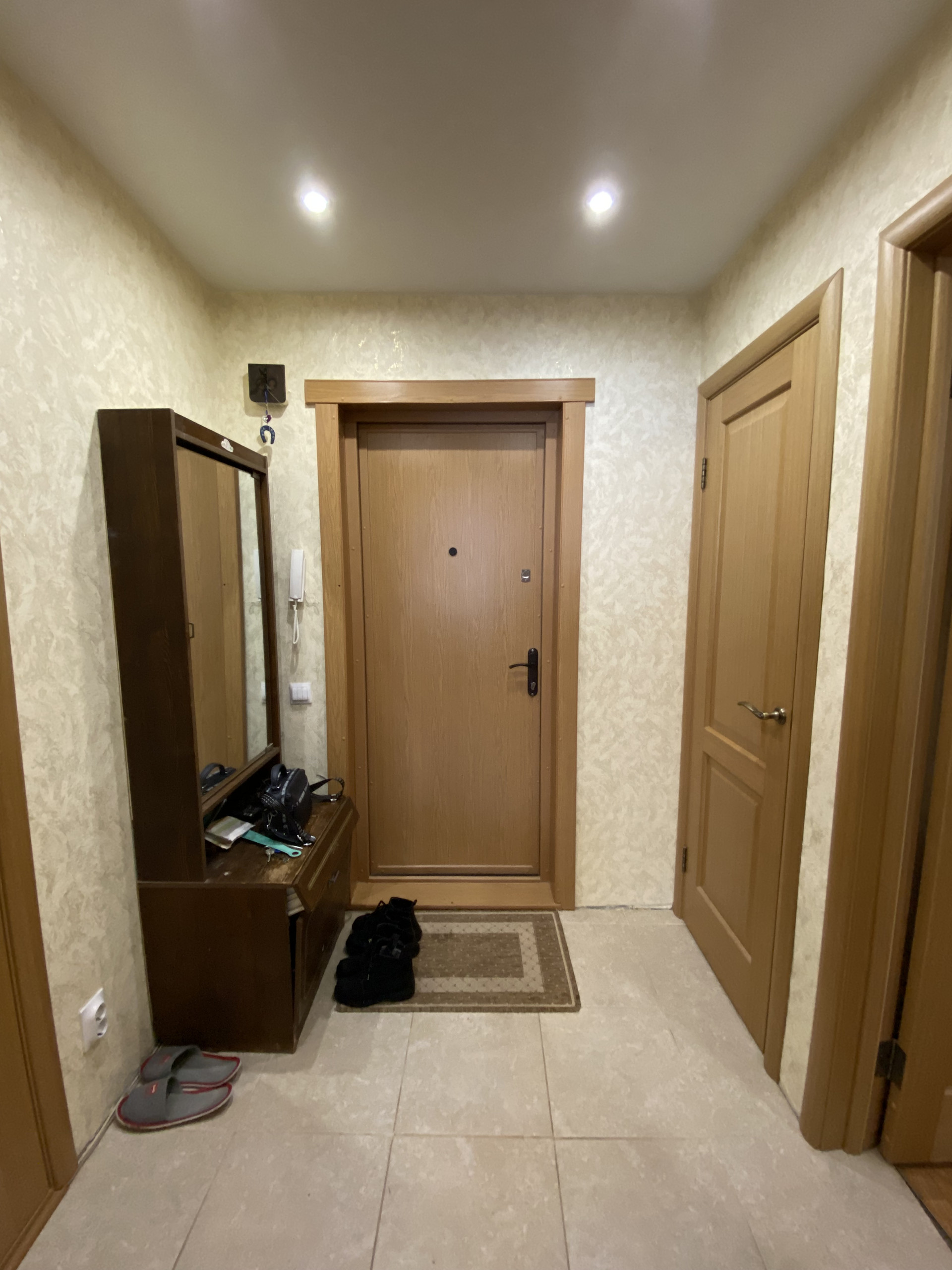 Пластиковые окна во всей квартире, лоджия застекленная. Во всех комнатах установлены биметаллические радиаторы. Натяжной потолок в комнате и прихожей. Новые межкомнатные двери. Электр. проводка вся заменена. В квартире остается вся мебель и техника. Для хранения одежды гардеробная комната. Санузел совмещенный в кафеле.  Квартира полностью готова для комфортного проживания.