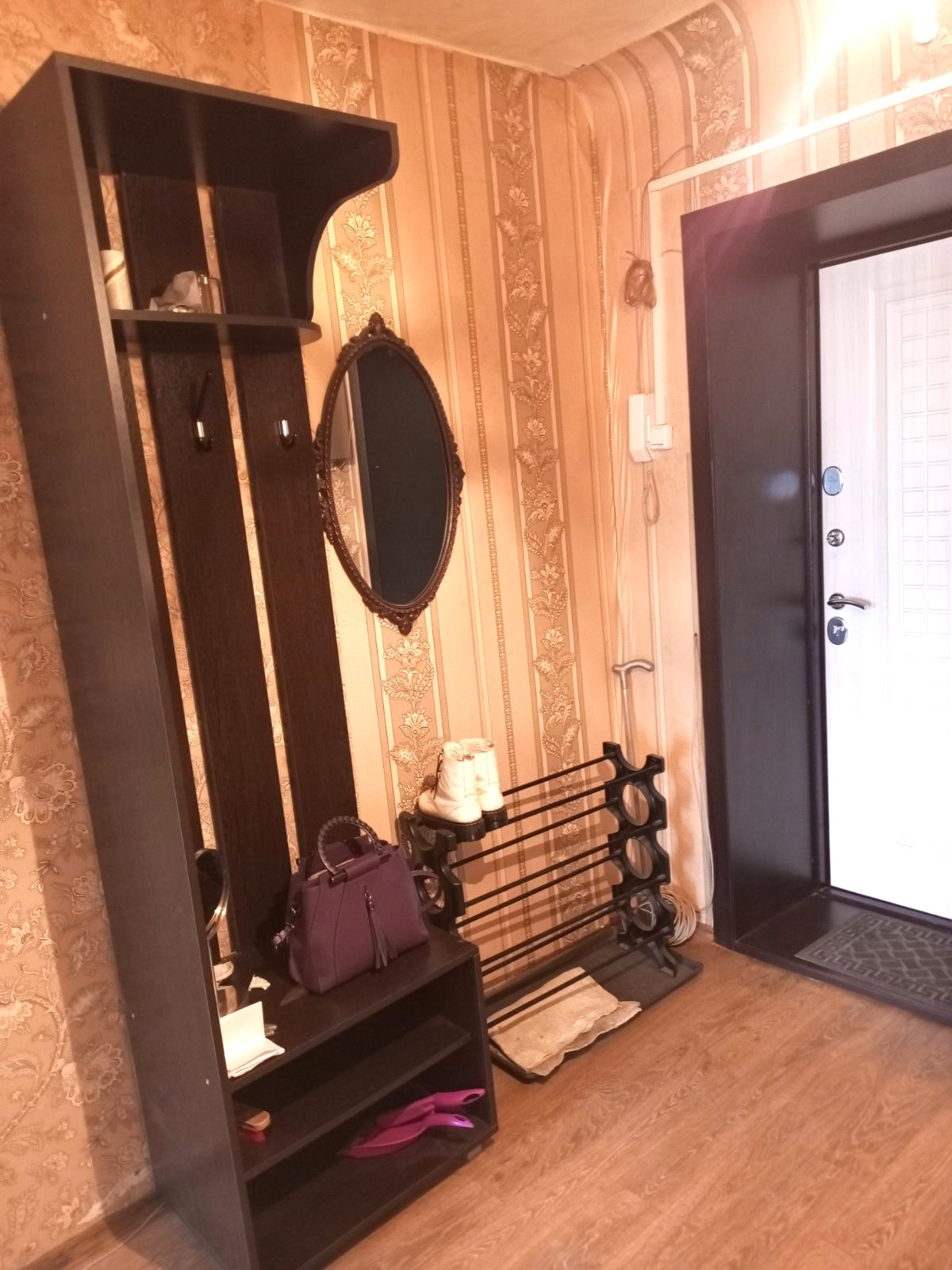 Прихожая   удобной планировки  , что позволяет разместить отдельные шкафы для хранения личных вещей . Имеется также большой тамбур.