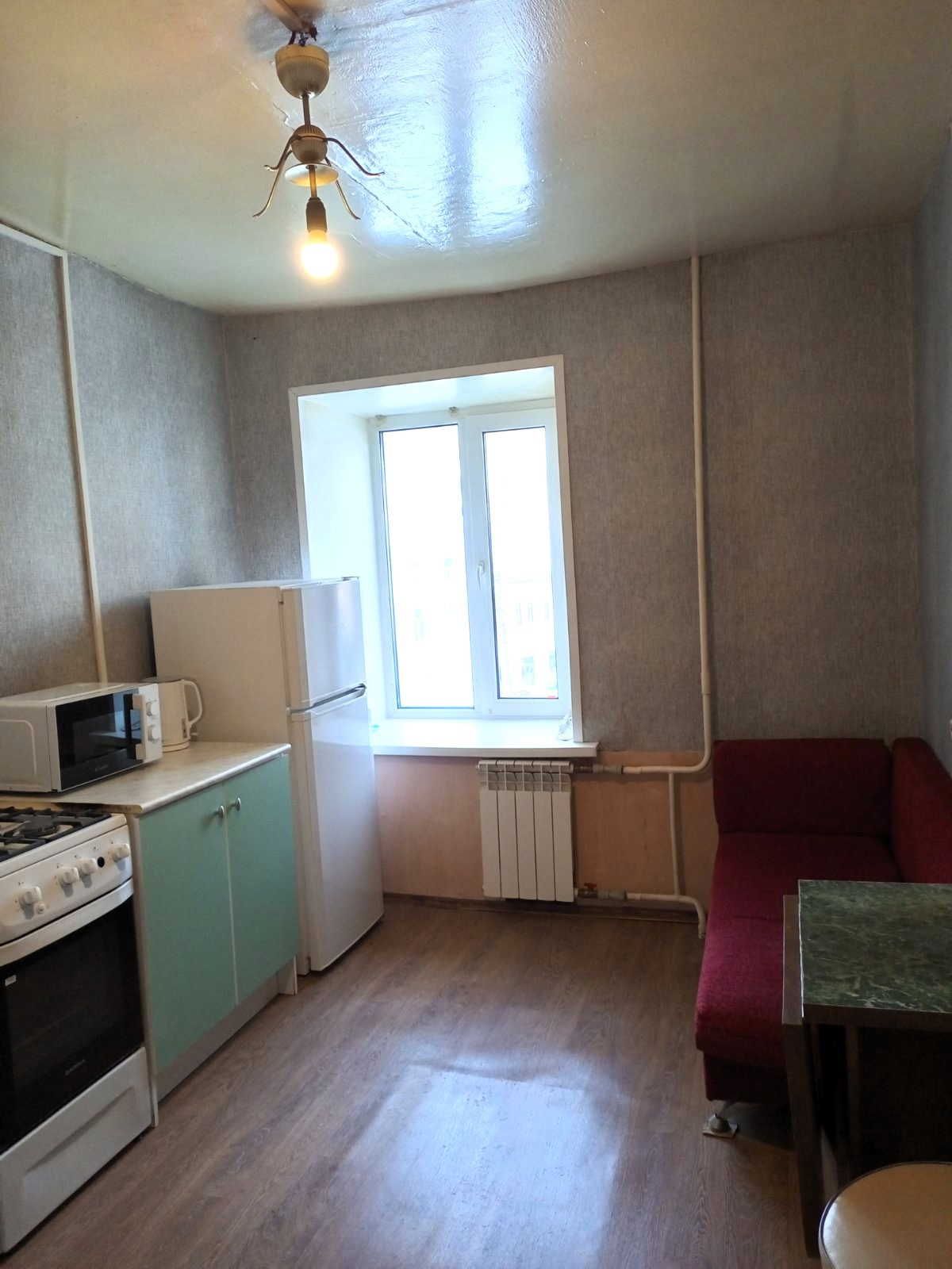 Большая просторная кухня 9 метров, Комната большая  ( 20 метров)с 2 окнами.( При желании можно сделать зонирование на 2 отдельных комнаты)