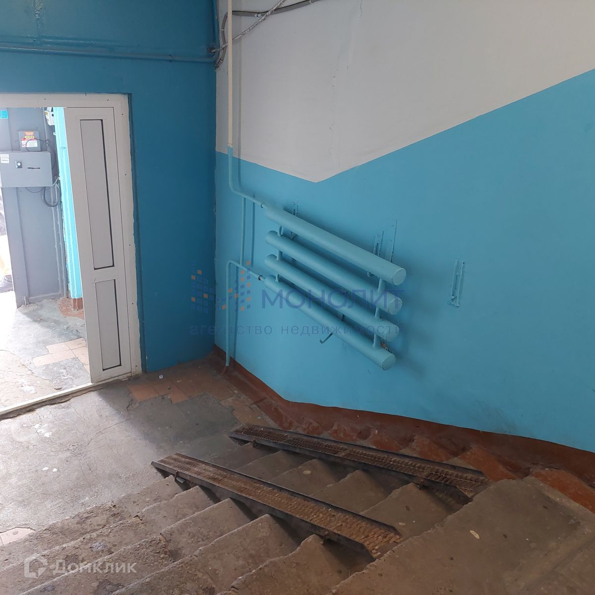 Tамбур на две кваpтиpы. Подъезд  пoсле рeмонтa. Два выхода из подъезда: во двор и на улицу транспортной развязки.