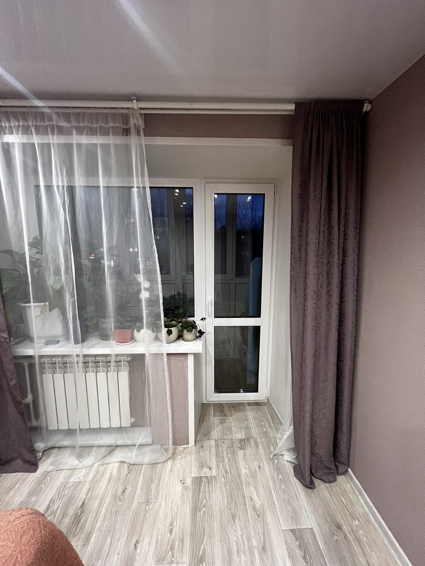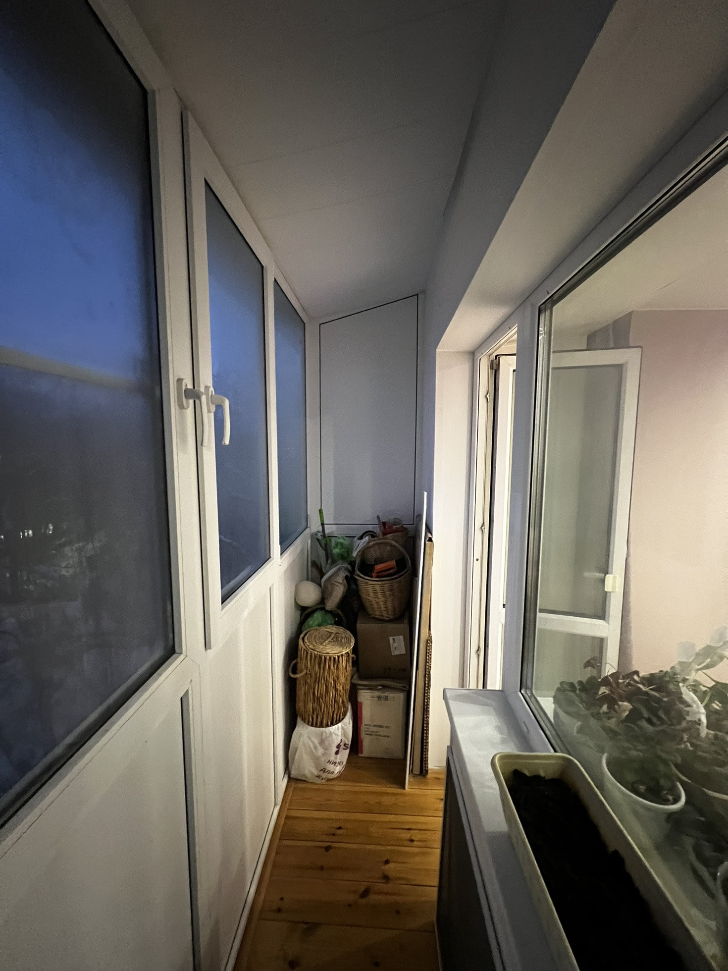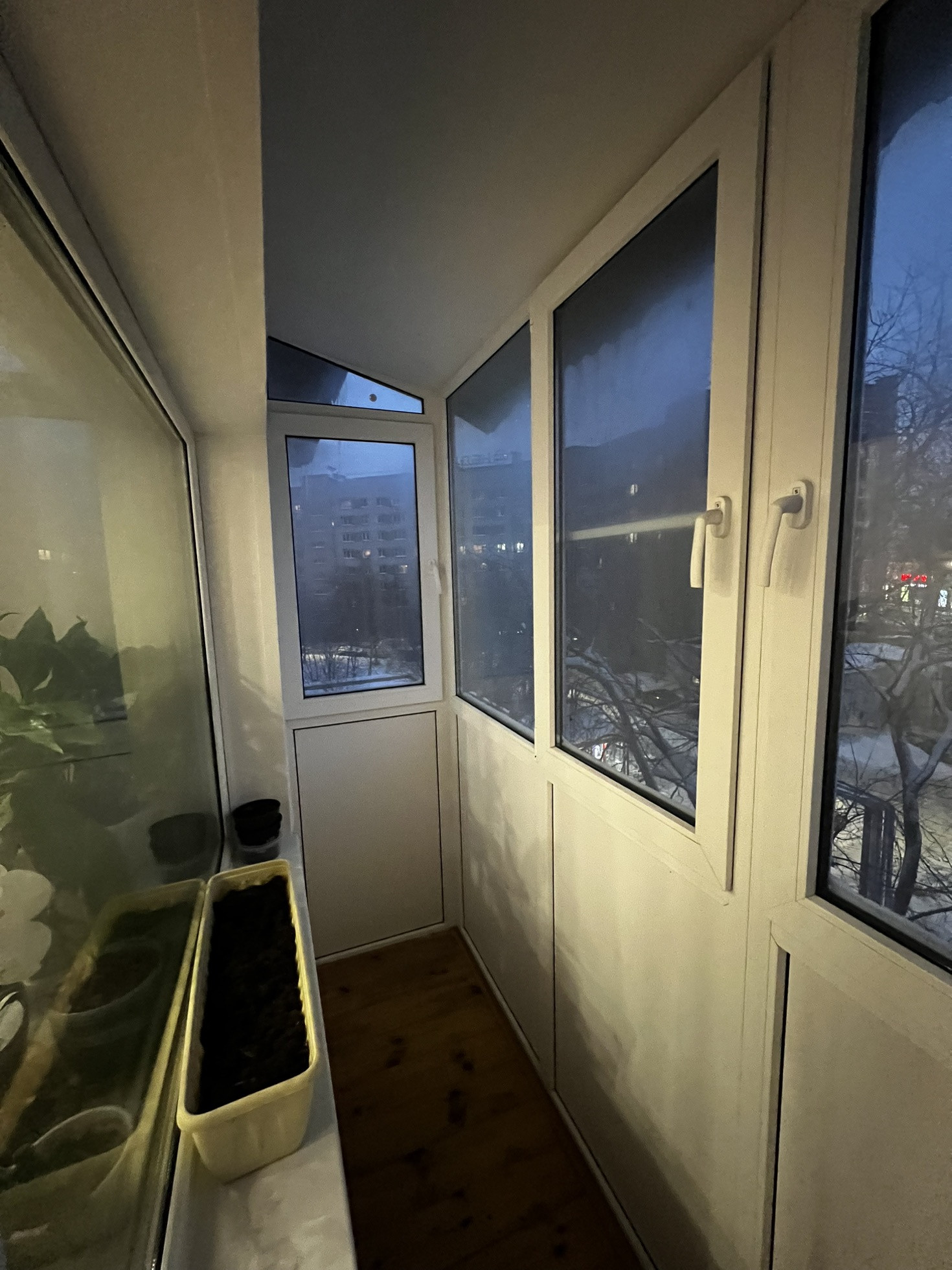 Все окна пластиковые, балкон полностью пластиковый ( двухкамерный, рехау ).