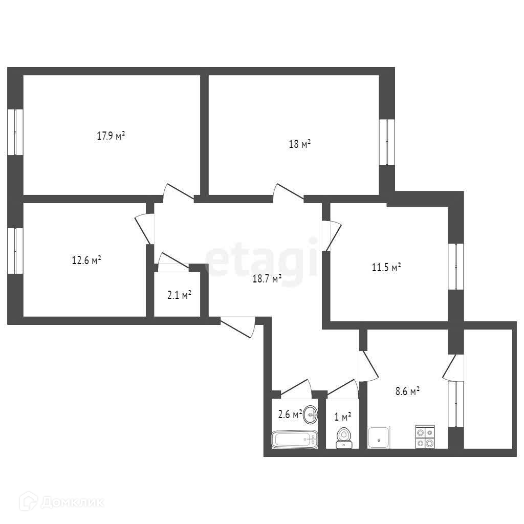 Общая площадь 95.7 м2