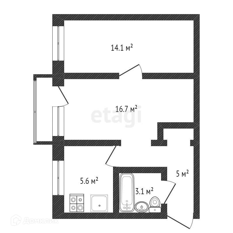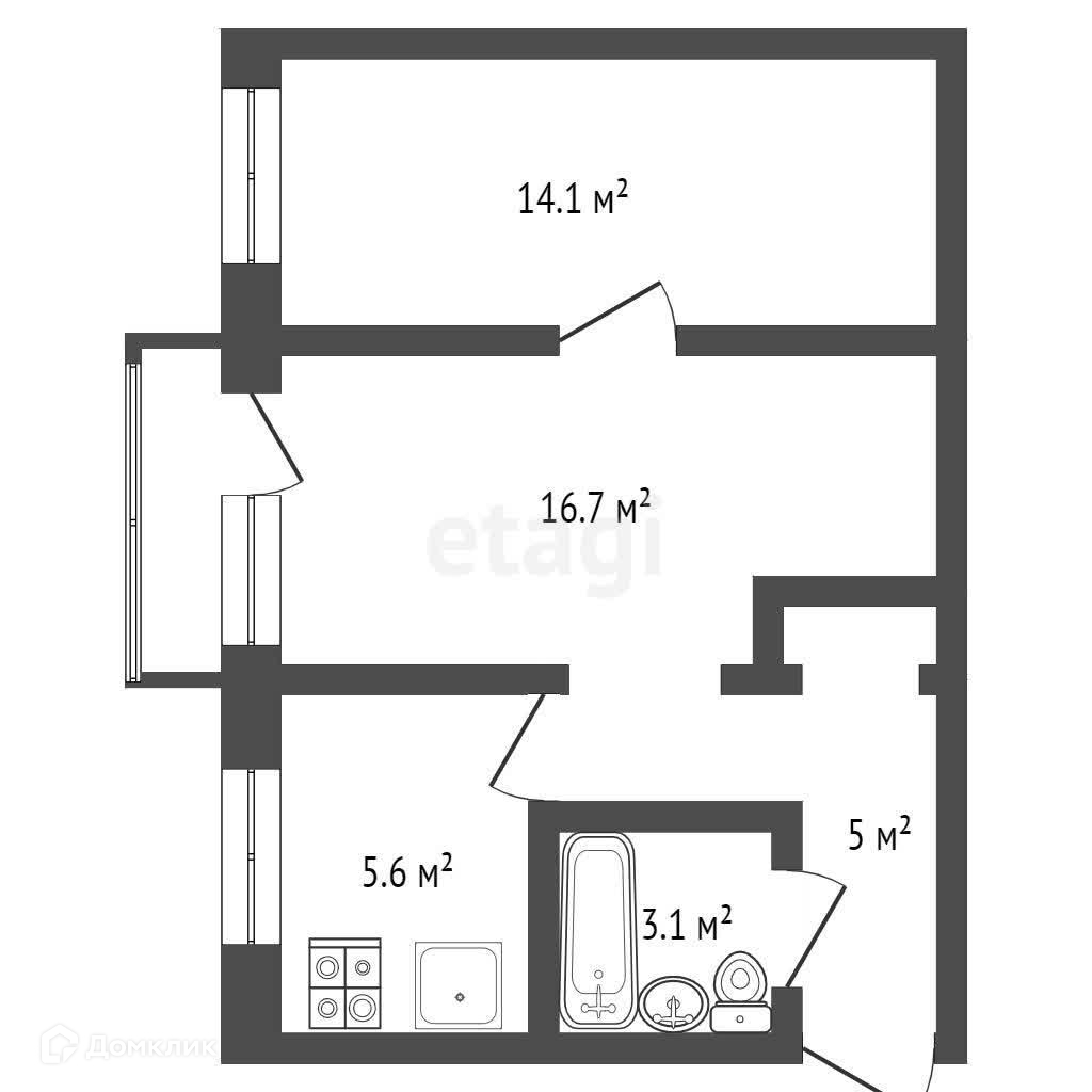 Общая площадь 46.5 м2