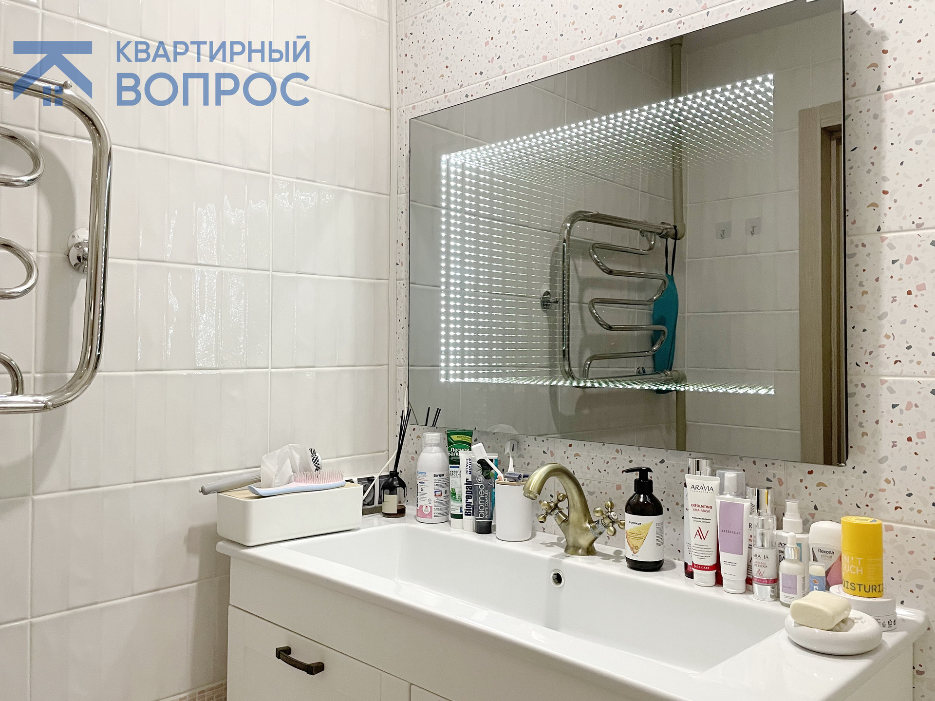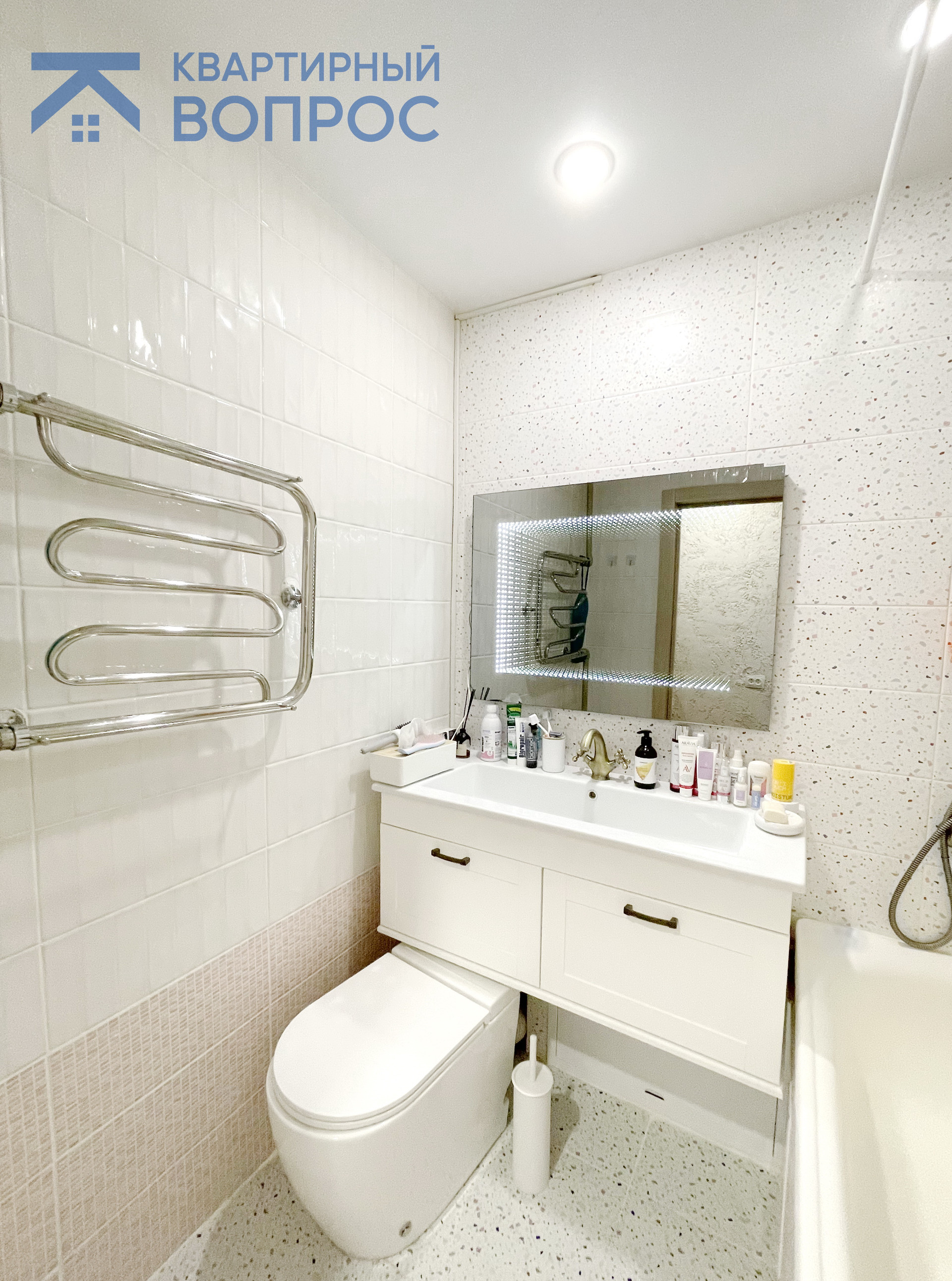 ⭐ В ванной комнате установлен современный унитаз с инсталляцией, импортные дорогие смесители, включая тропический душ, а также зеркало с подсветкой! Для экономии пространства стиральная машина спрятана в закрытый в шкаф в прихожей, все коммуникации подведены.