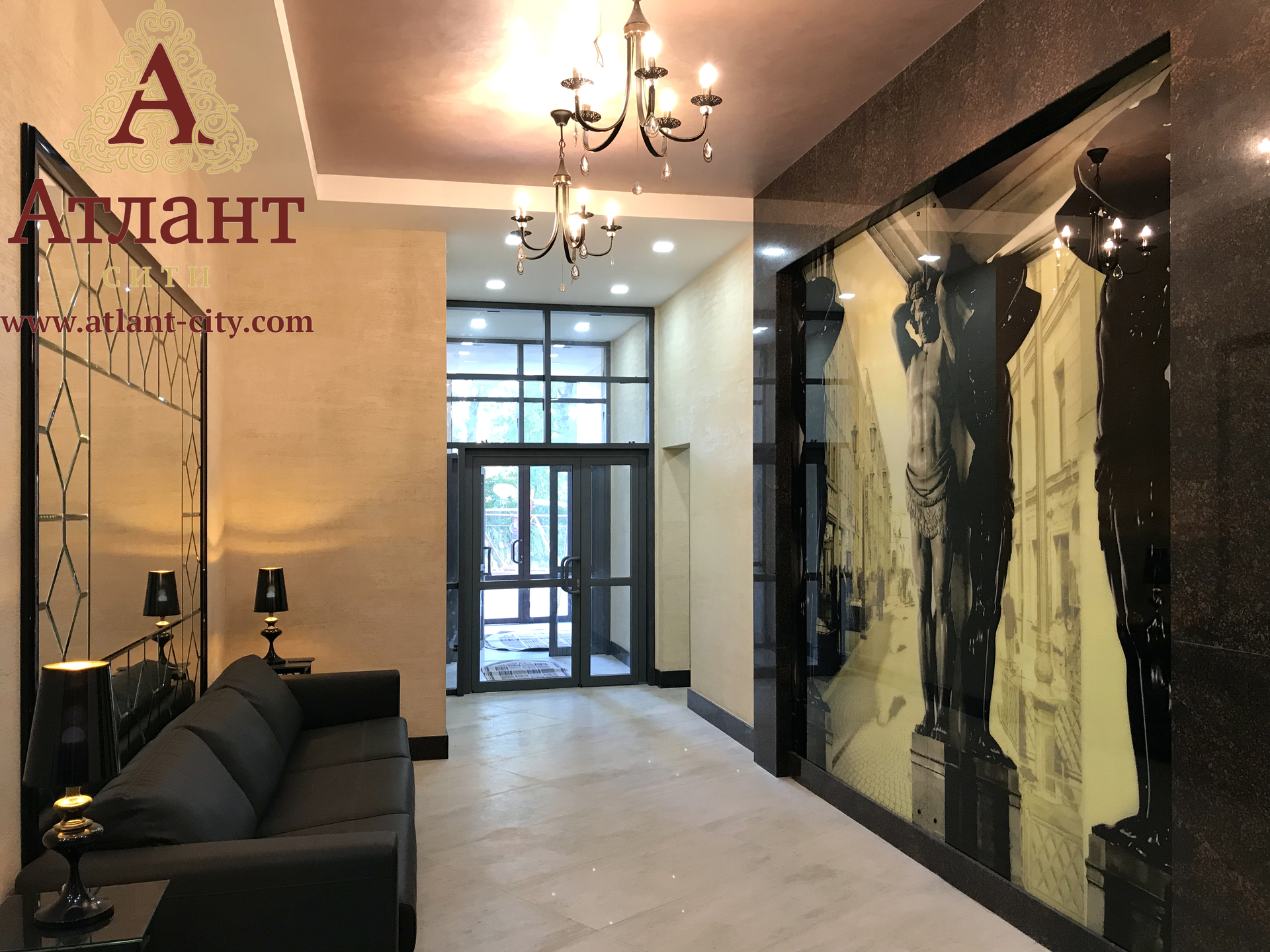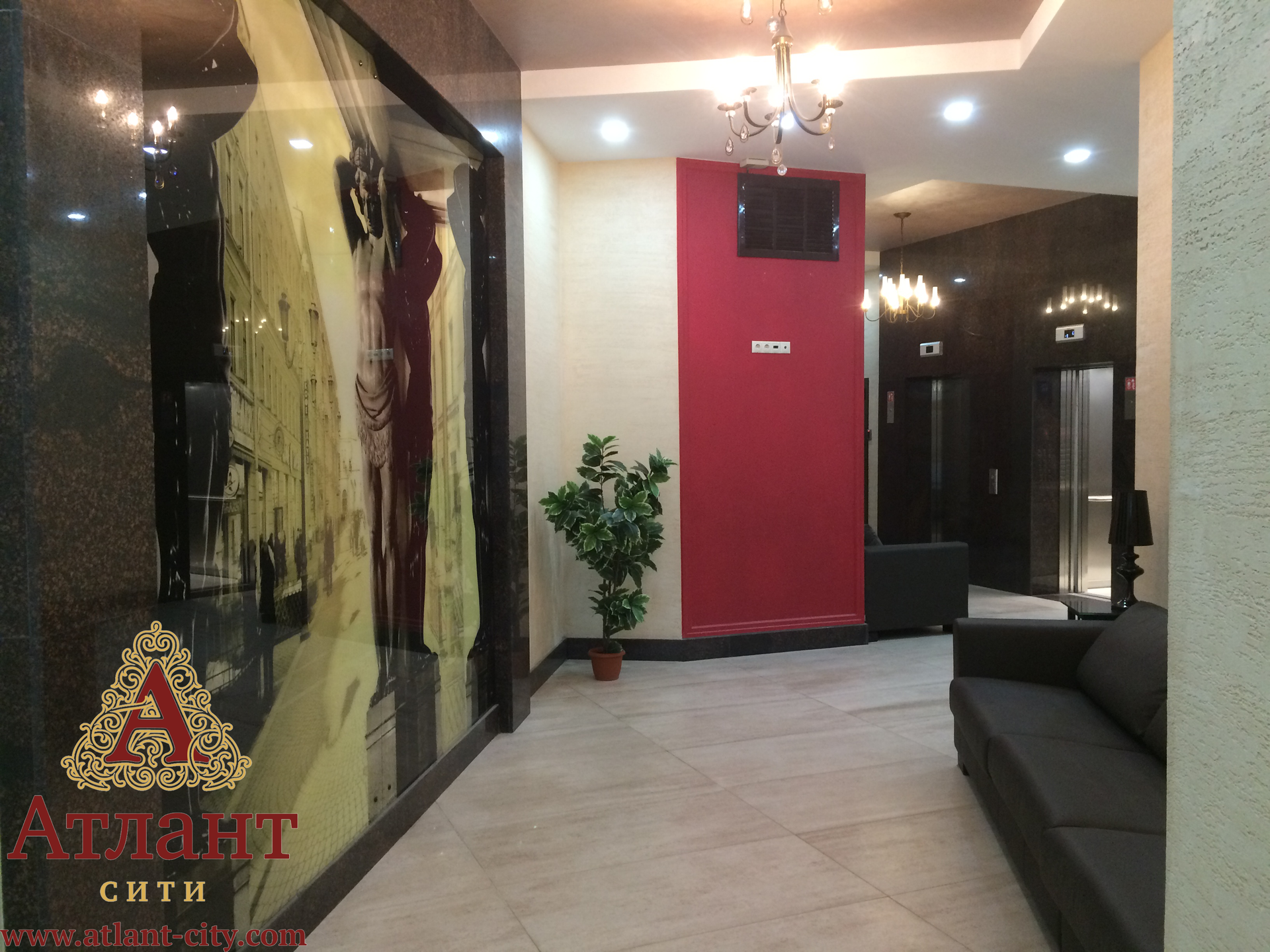 Роскошные лобби и холлы отделаны натуральным камнем  гранитом, с дорогой светотехникой, кожаными диванными и креслами.