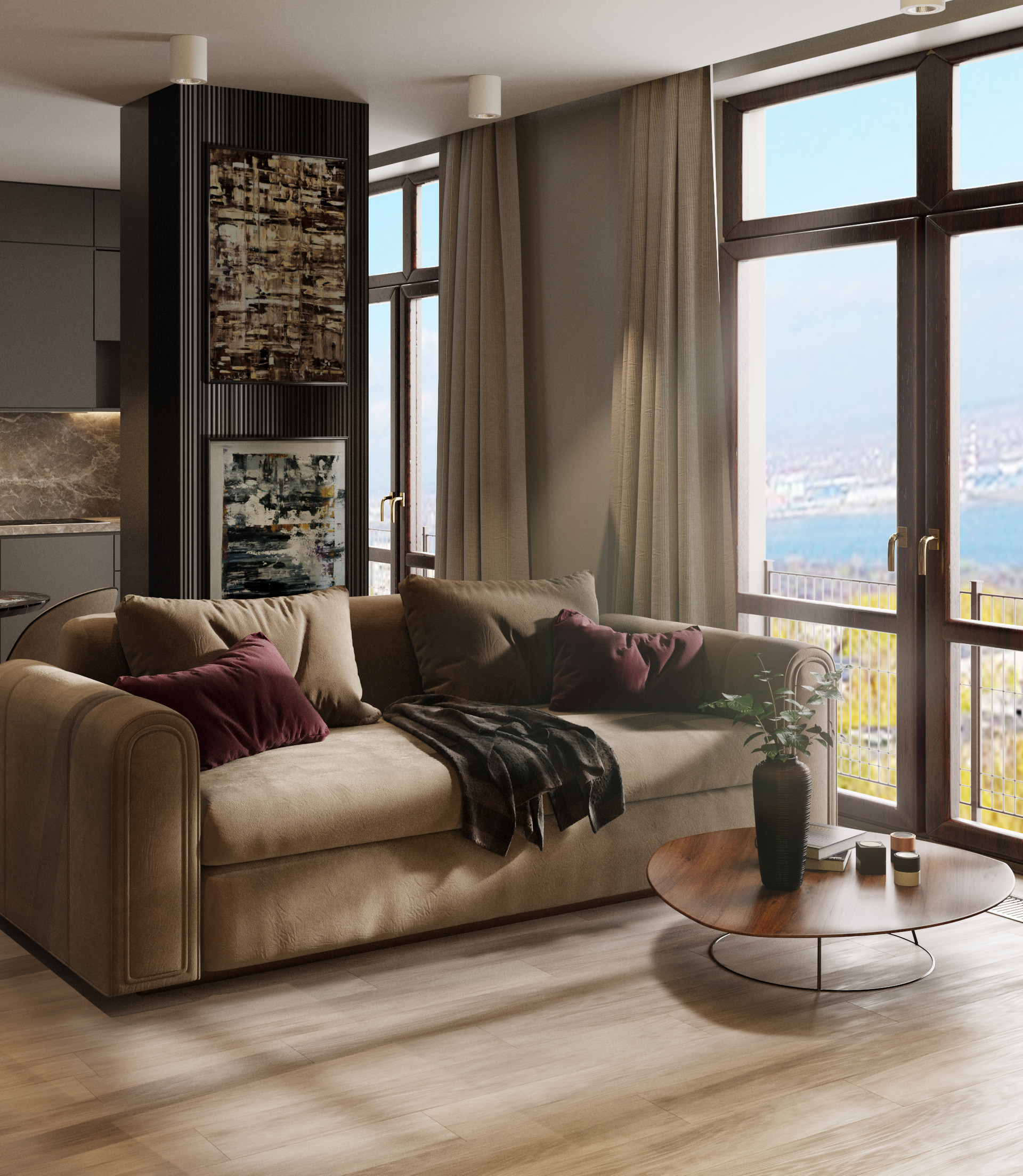 Квартира находится на 8 этаже (по высоте как 11 этаж обычного дома), откуда открываются живописные виды на реку и город. Квартира в свободной планировке позволяет создать свое неповторимое пространство. Квартира уже укомплектована высококачественными панорамными окнами из натурального дерева с английским стеклом Pilkington. Все лоджии  жилые и остеклены такими же окнами, как и во всей квартире, что позволяет увеличить полезную площадь квартиры, не изменив фасад комплекса и сэкономить Ваше время и деньги. Стальные двери - статусные с сочетаниями фактуры дерева и полированного металла создают единообразие стиля во всем доме. Высокое качество всех используемых материалов. Стоит отметить инновационную инженерную систему RAUTITAN, срок службы которой превышает 50 лет.