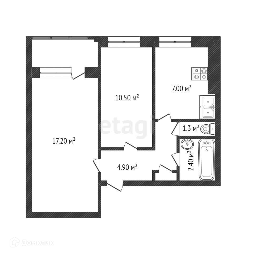Общая площадь 45.3 м2