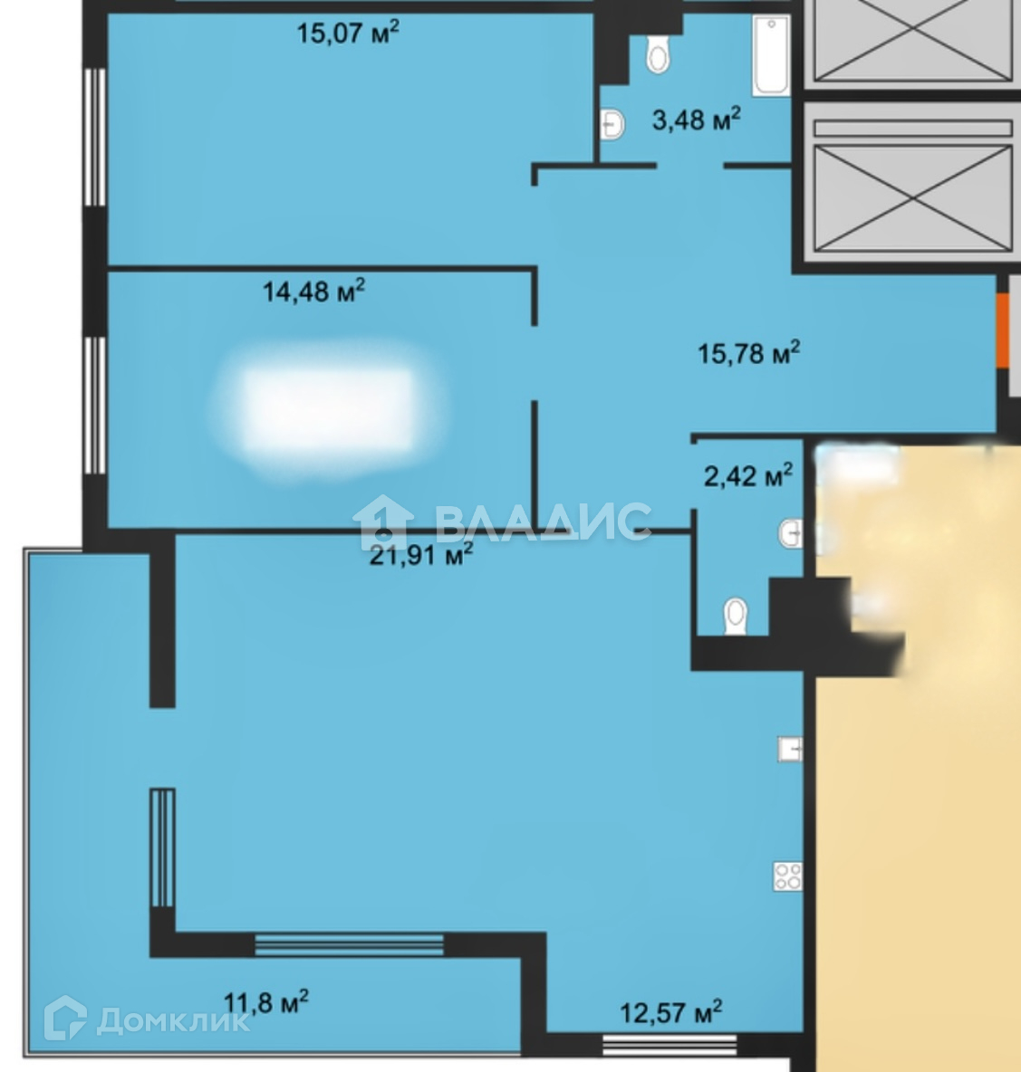 Квартира с предчистовой отделкой: выполнена качественная стяжка пола, установлены водяные счётчики, выполнен ввод электричества.