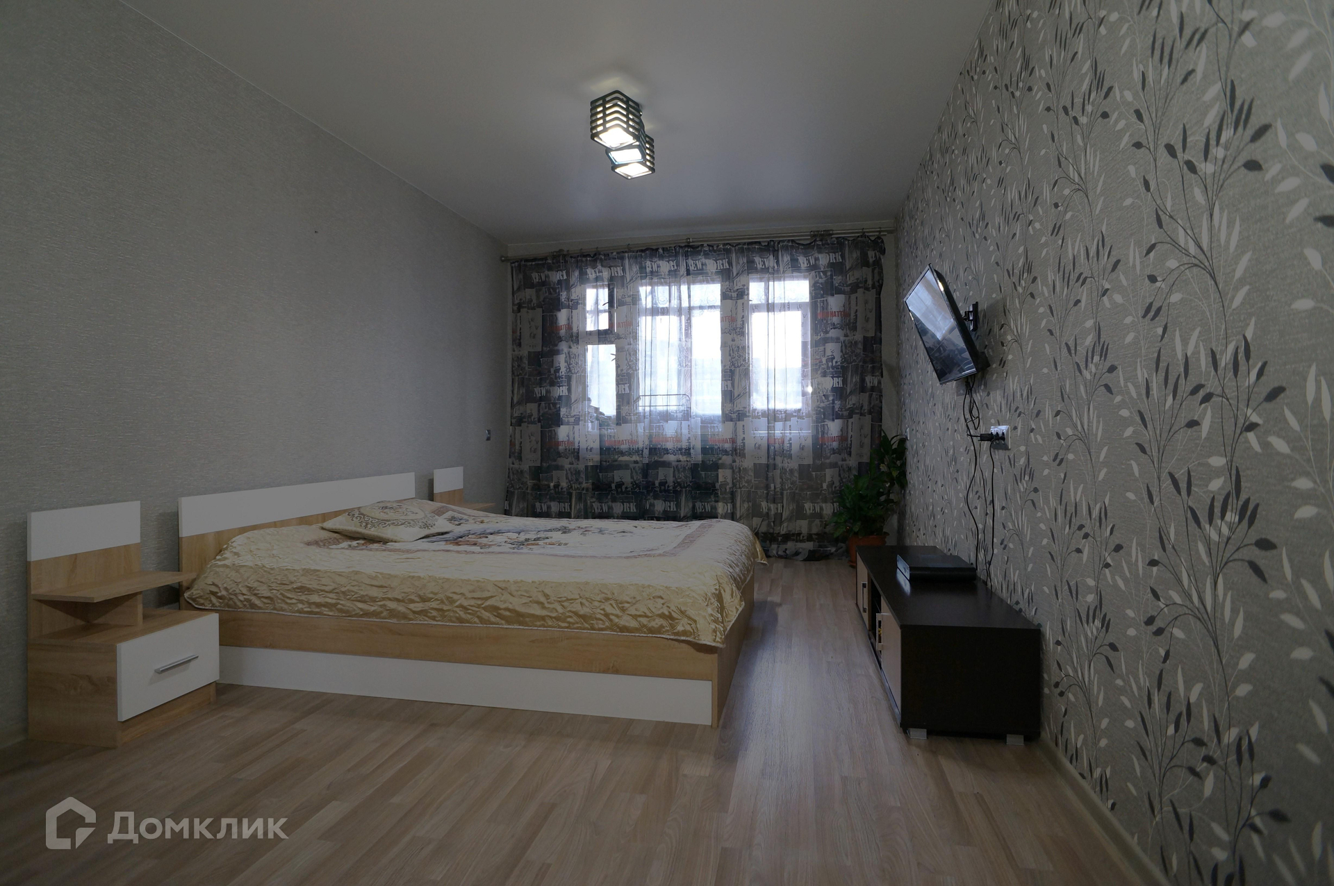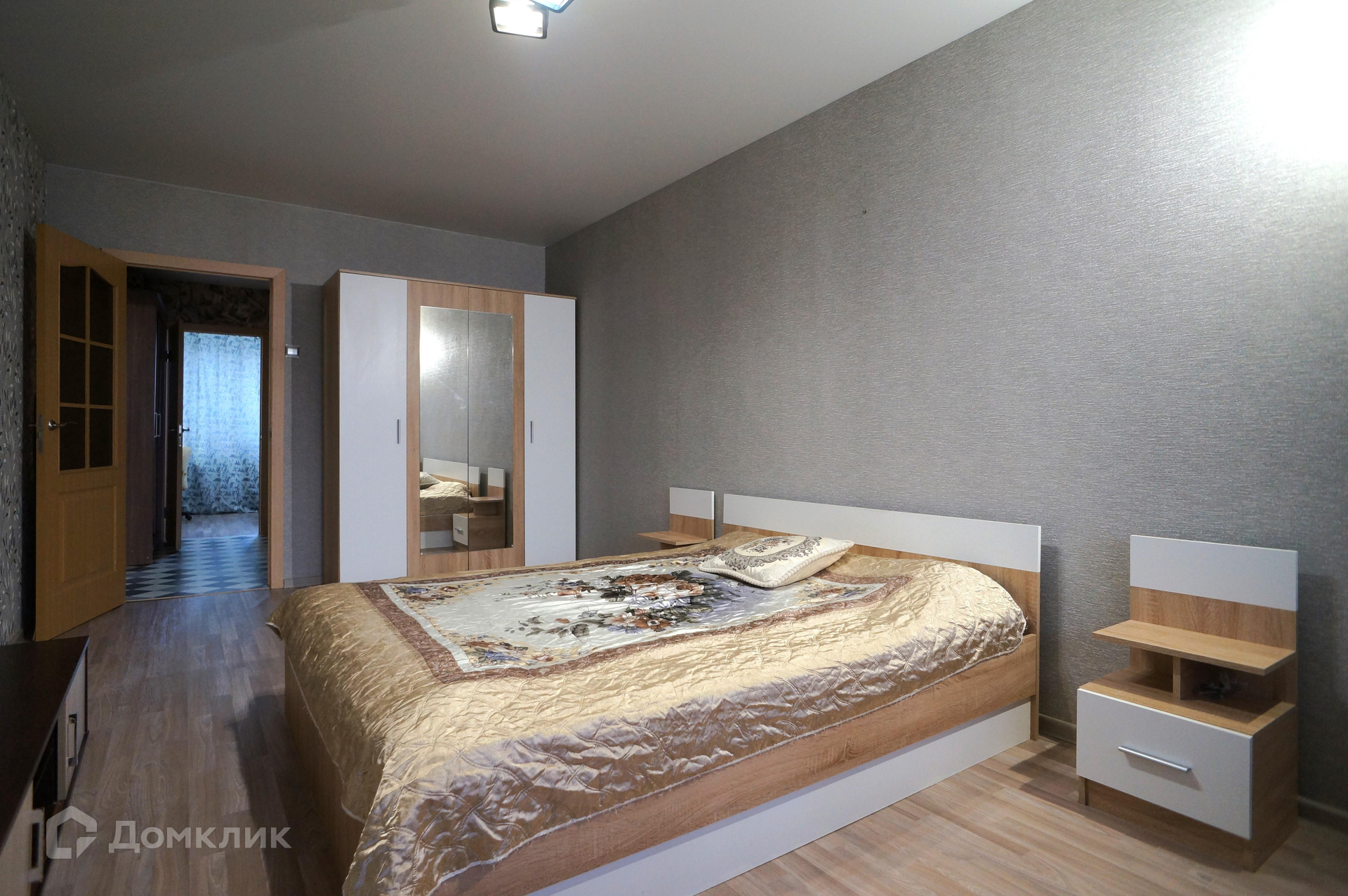 Выровнены полы, стены, заменена проводка, межкомнатные двери, везде натяжные потолки, новые обои, напольное покрытие линолеум.