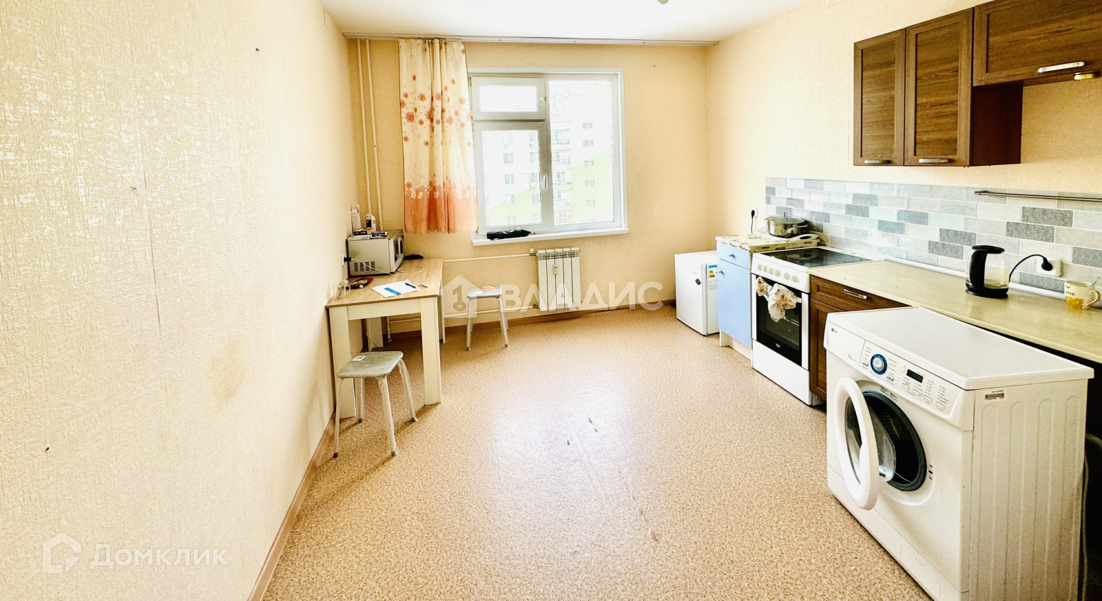 Кухня и комната на разные стороны.Утром солнышко на кухне, вечером в комнате.