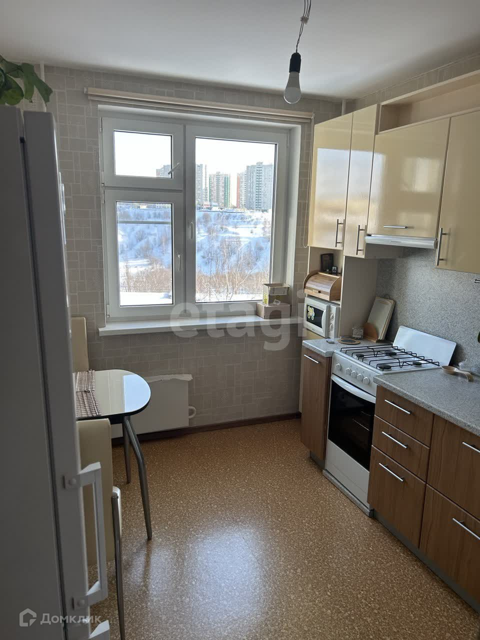 Кухня 9,8 метров. Комната 14,4. Большой застекленный балкон 2,6 метра. Красивый Вид из окон. В туалете, ванной - сделан качественный ремонт. Большая кухня, гарнитур мебель остается. Просторный коридор, встроенный гардероб.