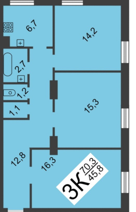 Общая площадь 72.8 м2