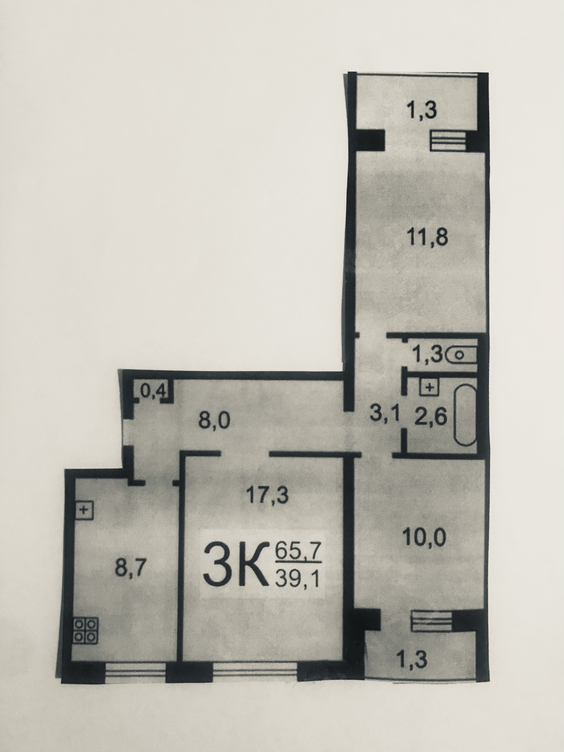 Жилая площадь 38.4 м2