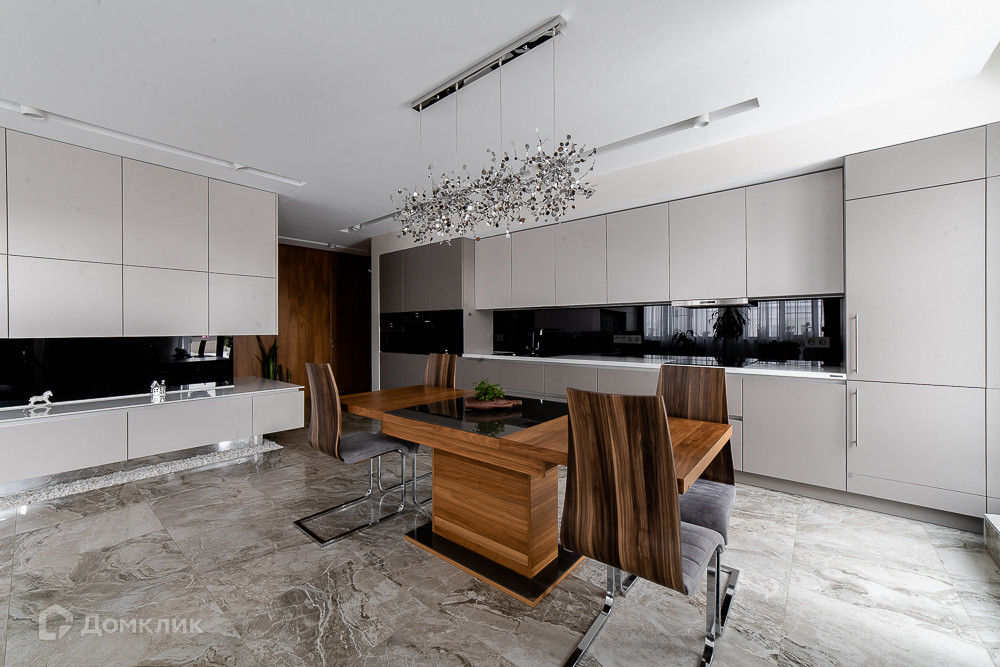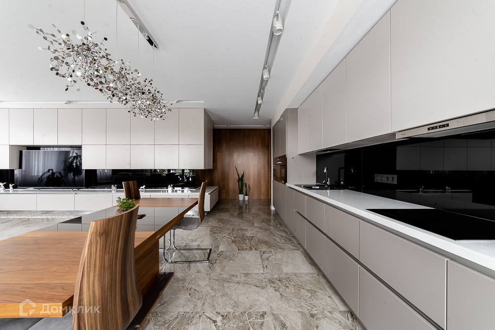 Продумано и подобрано всё до мелочей - многоуровневое освещение, акустическая система по всей квартире, дорогая сантехника и оснащение ванной комнаты, встроенная техника премиальных брендов.