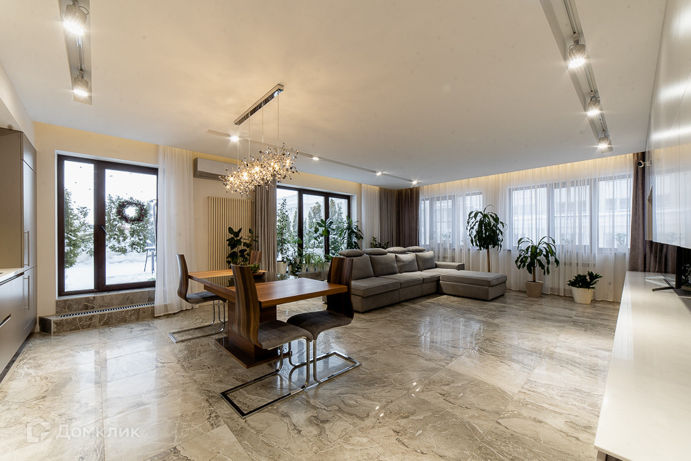 4-х комнатная квартира общей площадью 238 м2, из которых площадь квартиры 131,7 м2 + терраса 107 м2. Высота потолков 3.1 м.