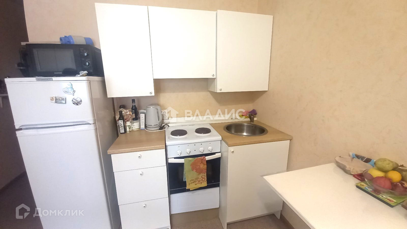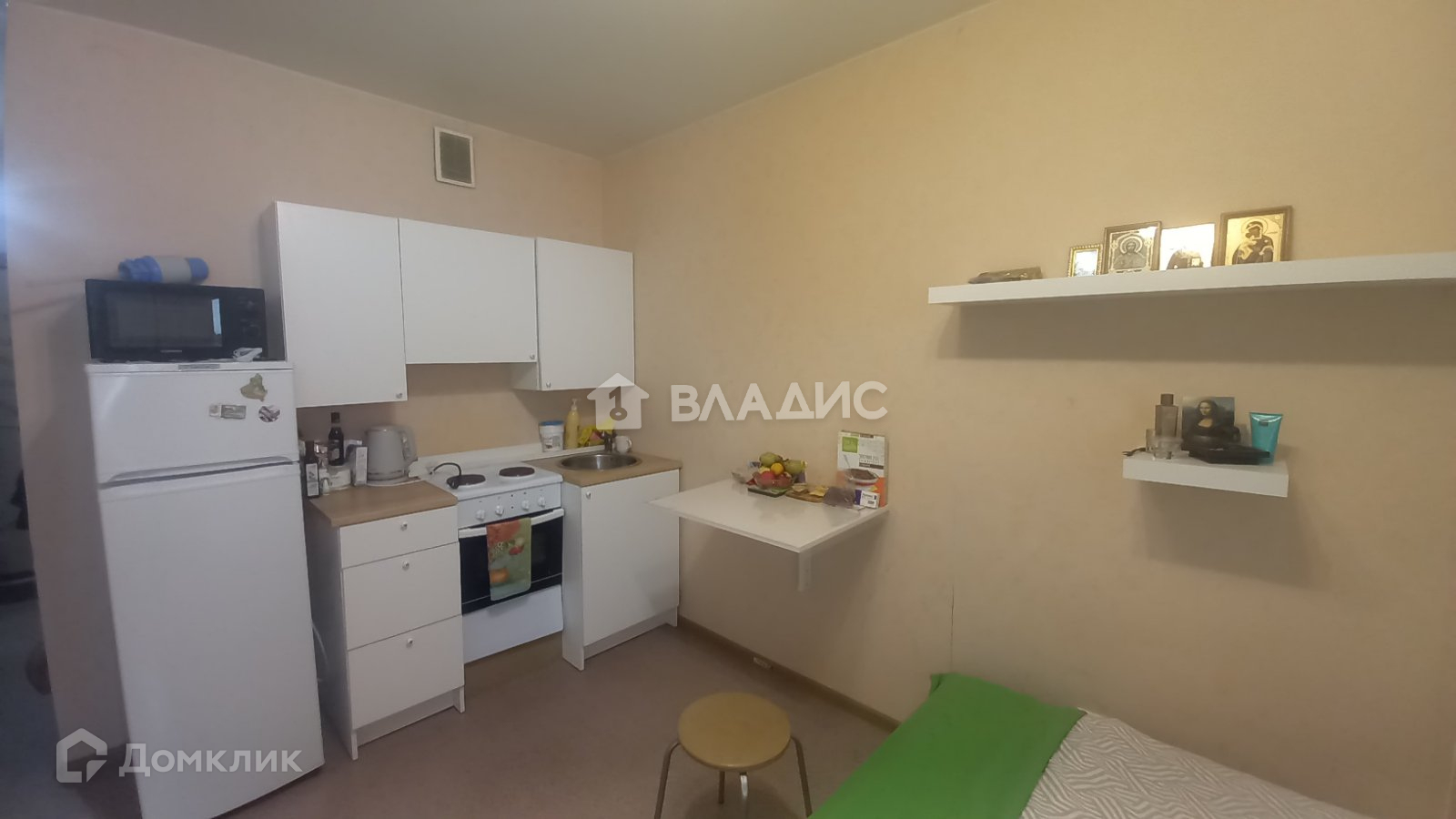 В квартире остается кухонный гарнитур, электроплита, шкаф из "Икеа", кровать.