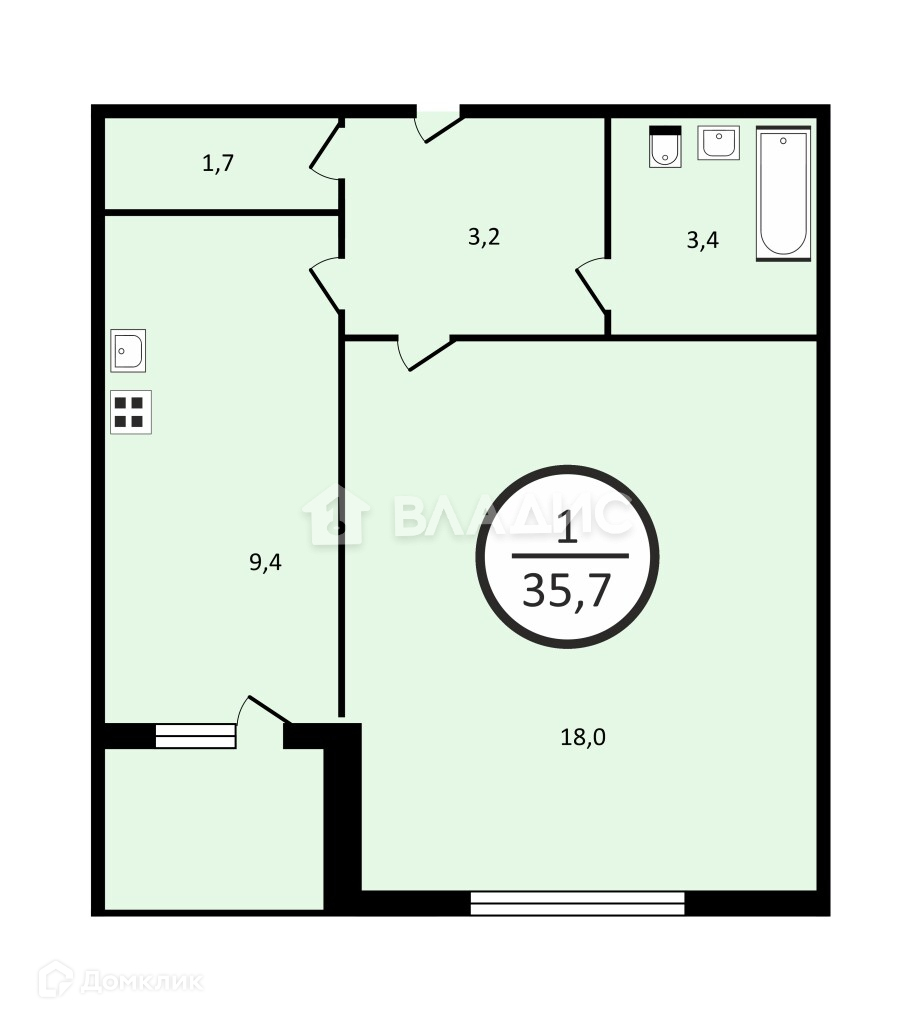 Общая площадь 35.5 м2