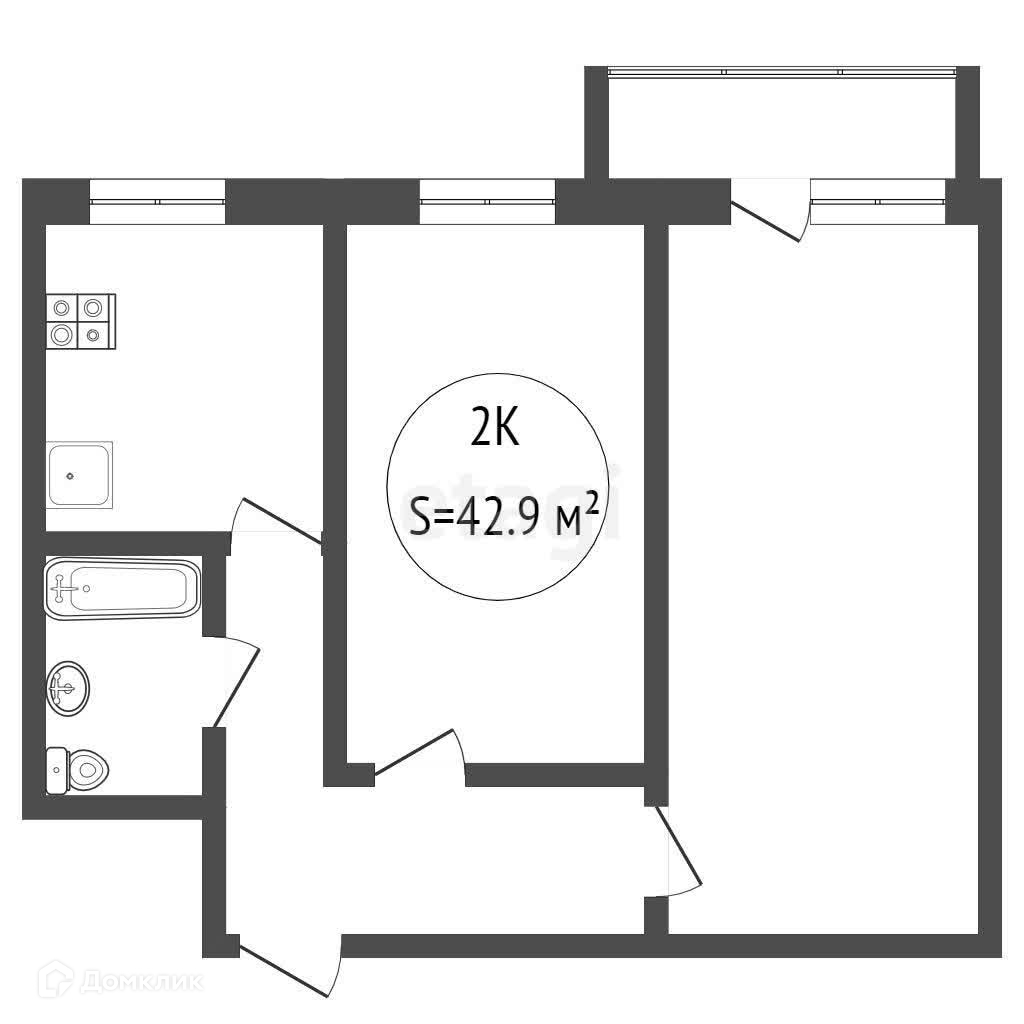 Общая площадь 42.9 м2
