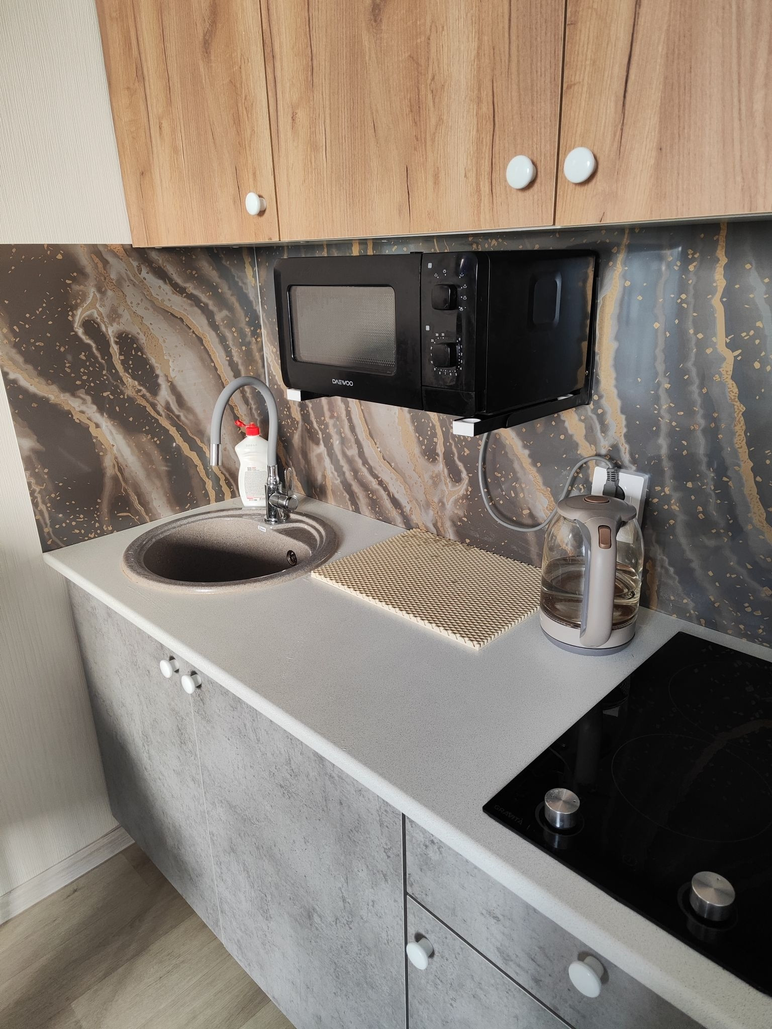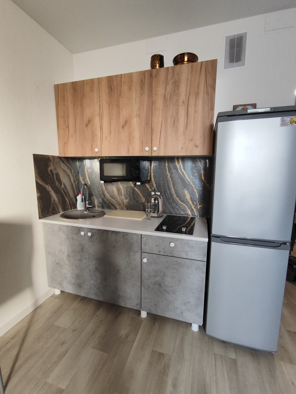 Большая квартира-студия в жк корабли. Жилая 13,3 м,полноценная прихожая 5м,санузел в плитке с ванной 5м. Балкон.Остается шкаф угловой,шкаф в прихожей,кухня,варочная панель,мойка каменная со смесителем.