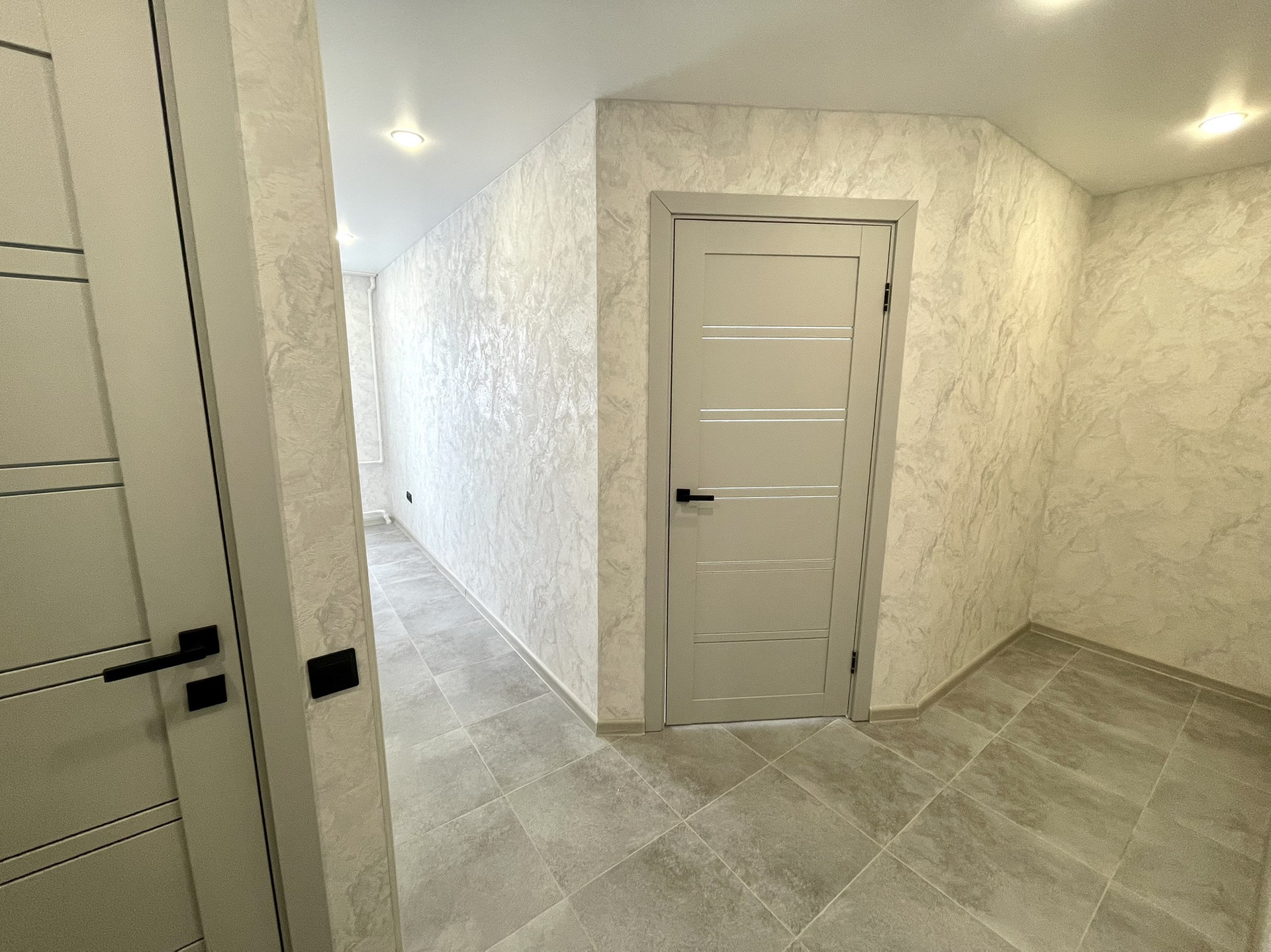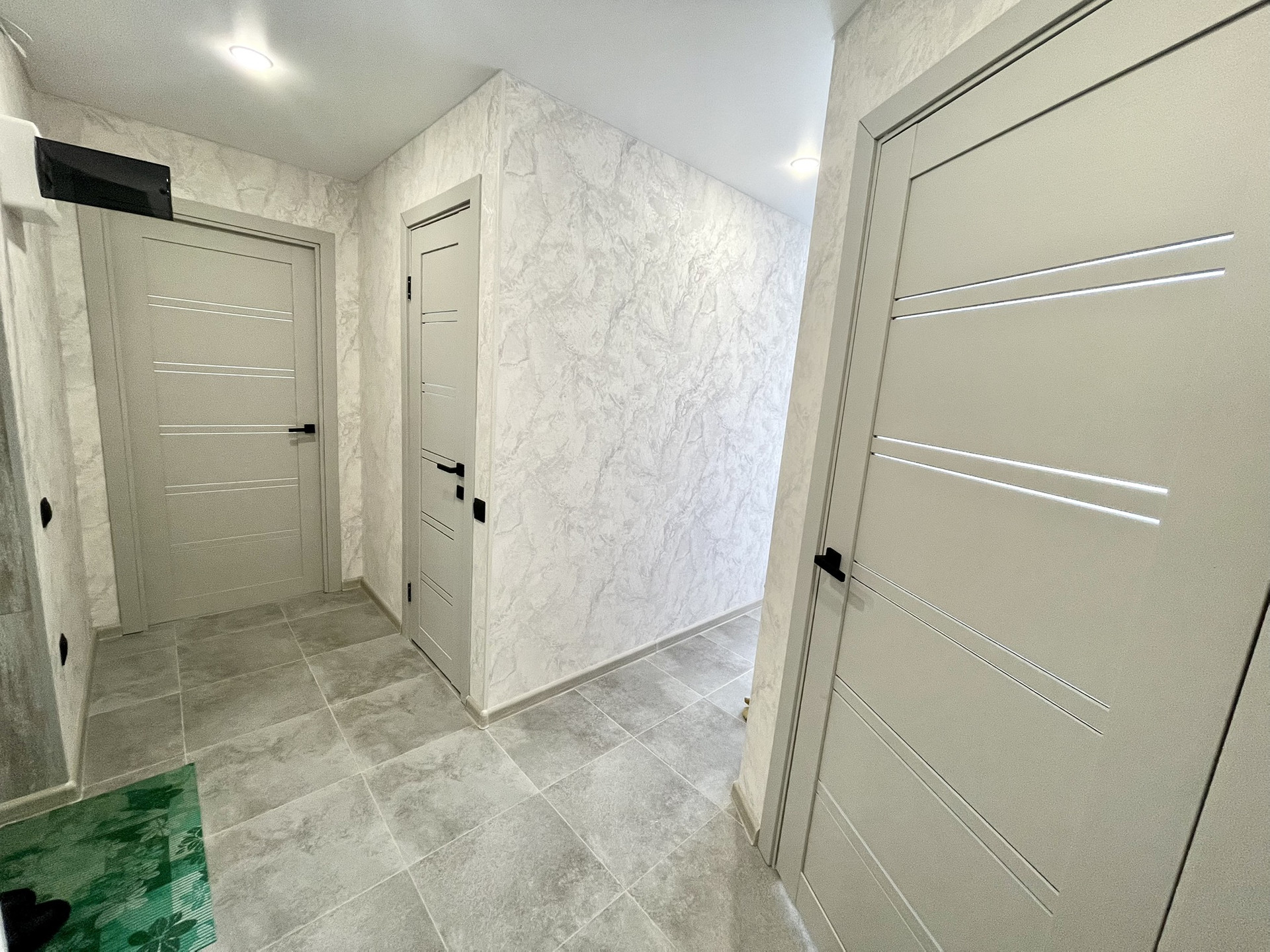 В комнатах на полу высокопрочный ламинат 33 класса. Качественные межкомнатные двери с магнитными замками .