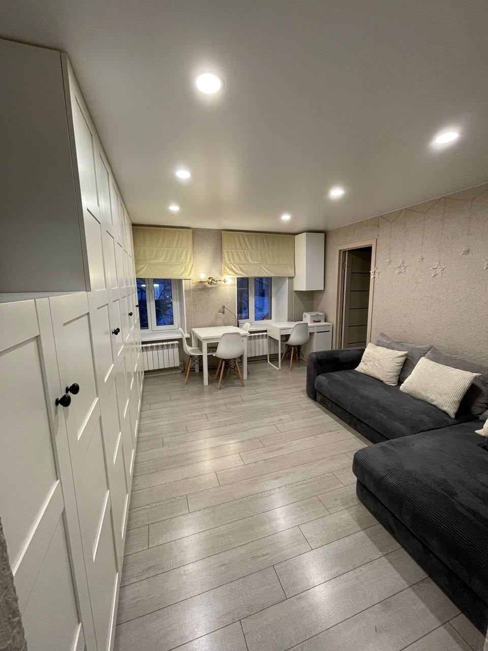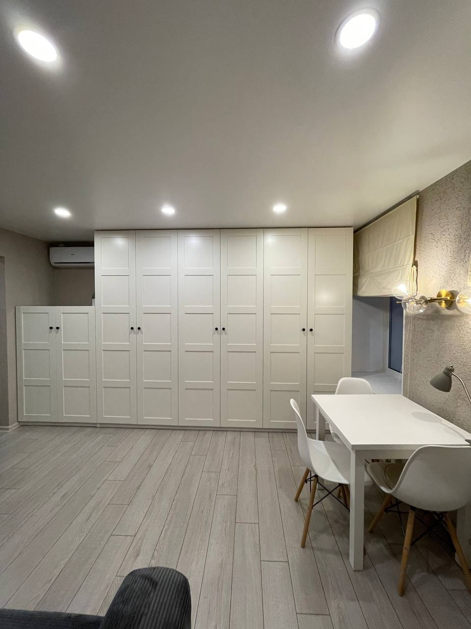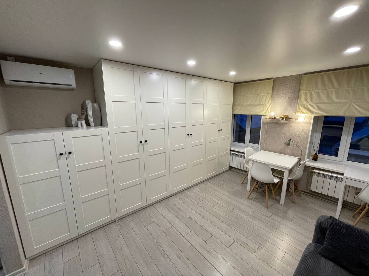 Качественный кухонный гарнитур, встроенные шкафы в гостиной, гардеробная. Очень много места для хранения. Кондиционер. Возможна продажа с мебелью и техникой, кондиционером . Стоимость обсуждается .