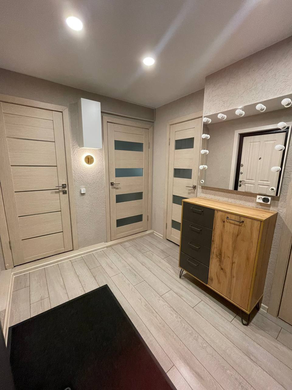 Бонус: отсыпанное щебнем парковочное место прямо у выхода из подъезда, шкаф и сундук для хранения в общем коридоре.