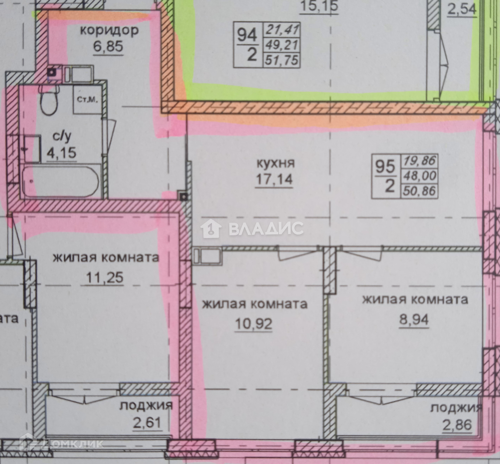 Общая площадь 50.8 м2