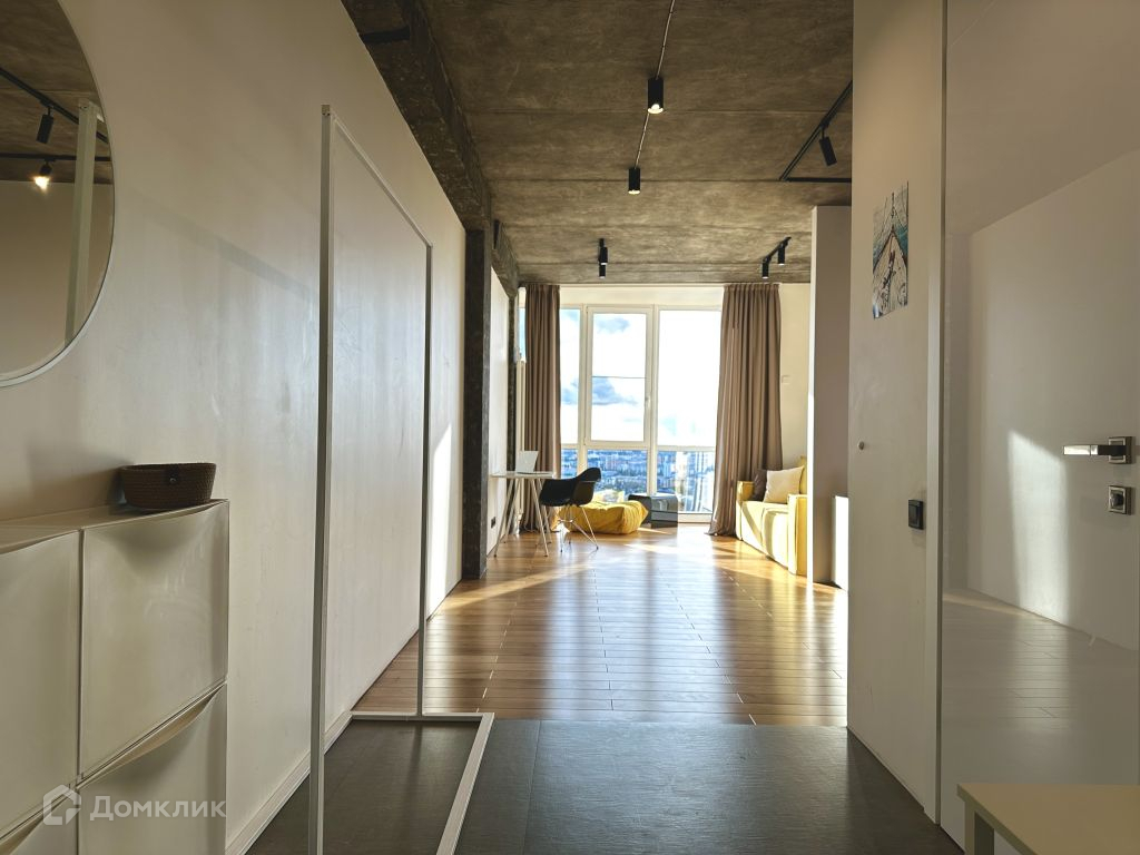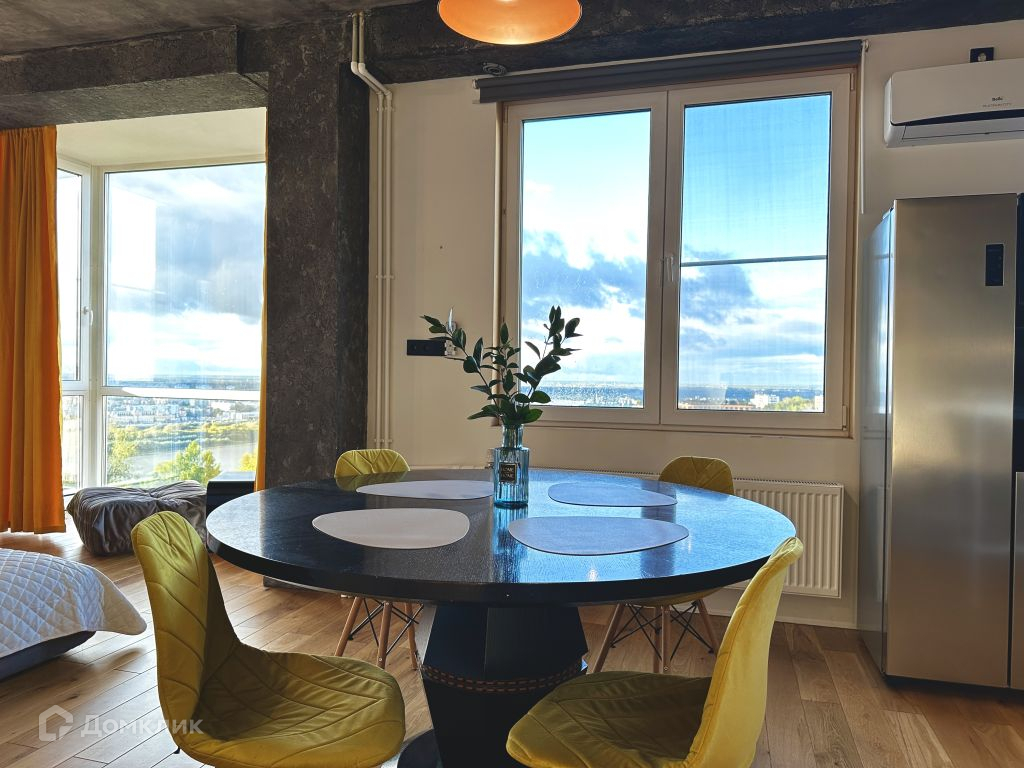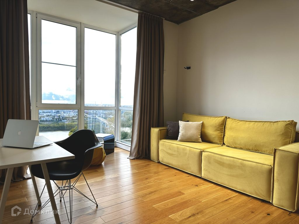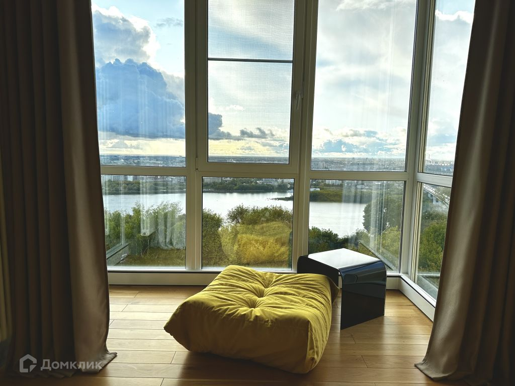 Квартира состоит из двух спален, в одной из которых есть просторная гардеробная, и кухни- столовой с выделенной зоной гостиной. Из витражных окон квартиры открываются панорамные виды на город, набережную реки. Самые красивые закаты будут только для Вас.