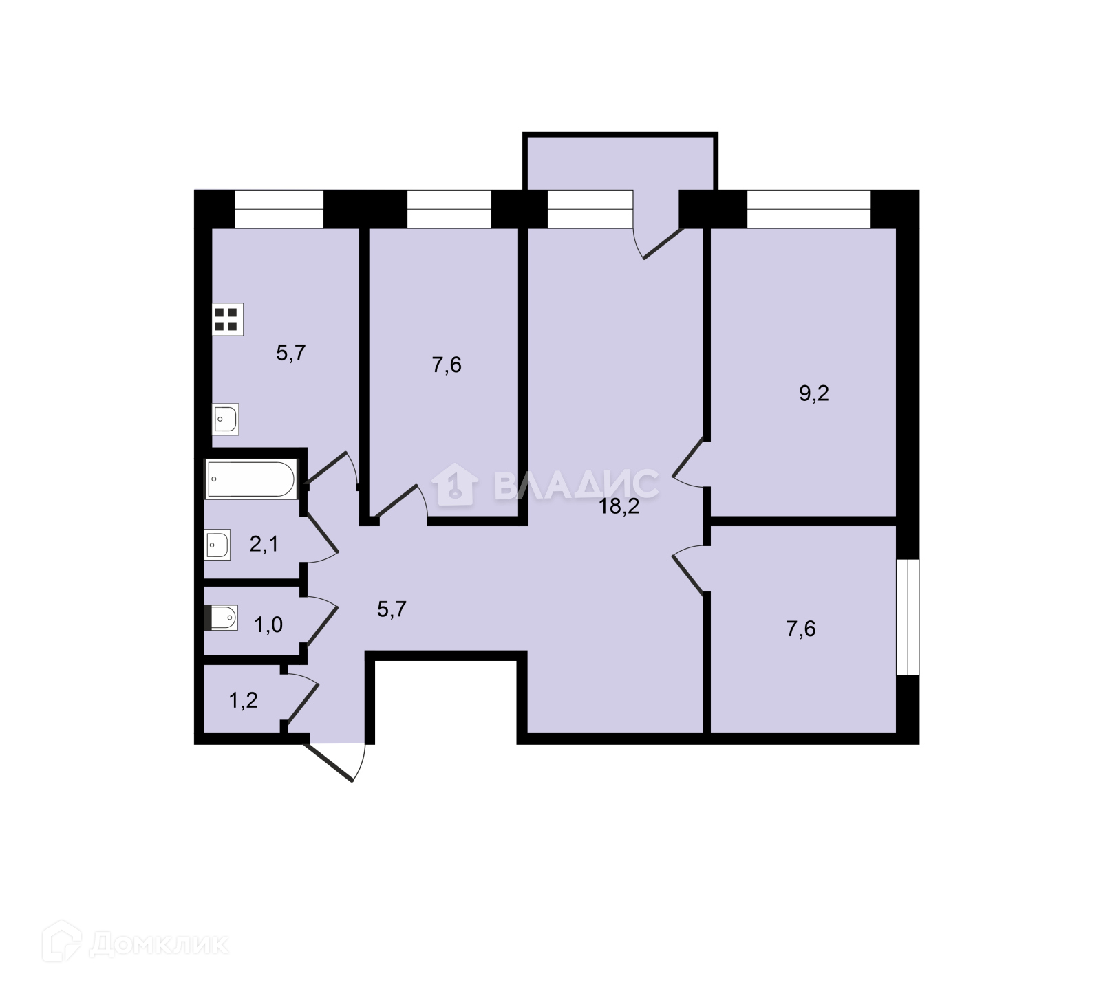 Общая площадь 58.3 м2