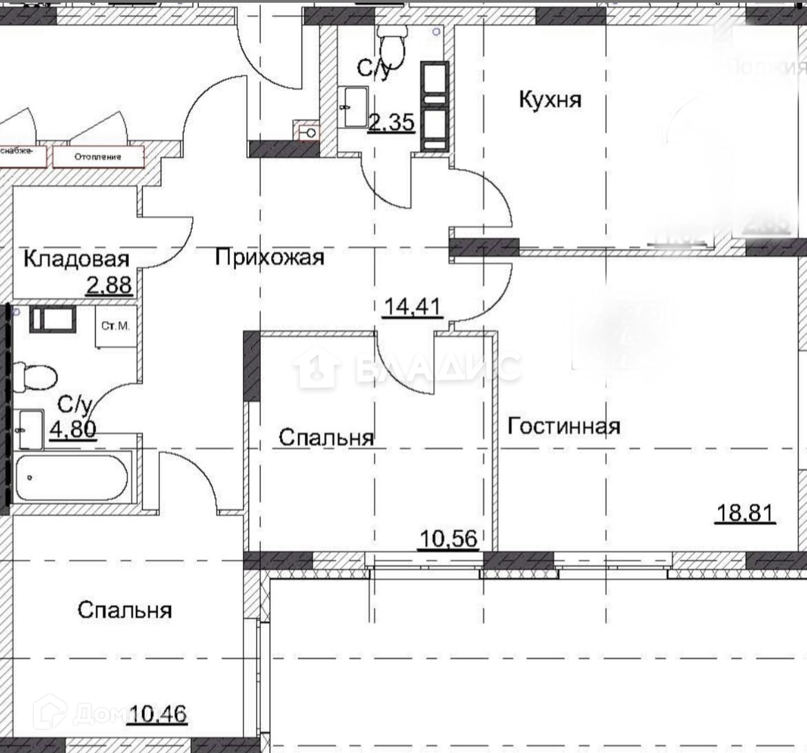 Балкон, лоджия 1 лоджия
