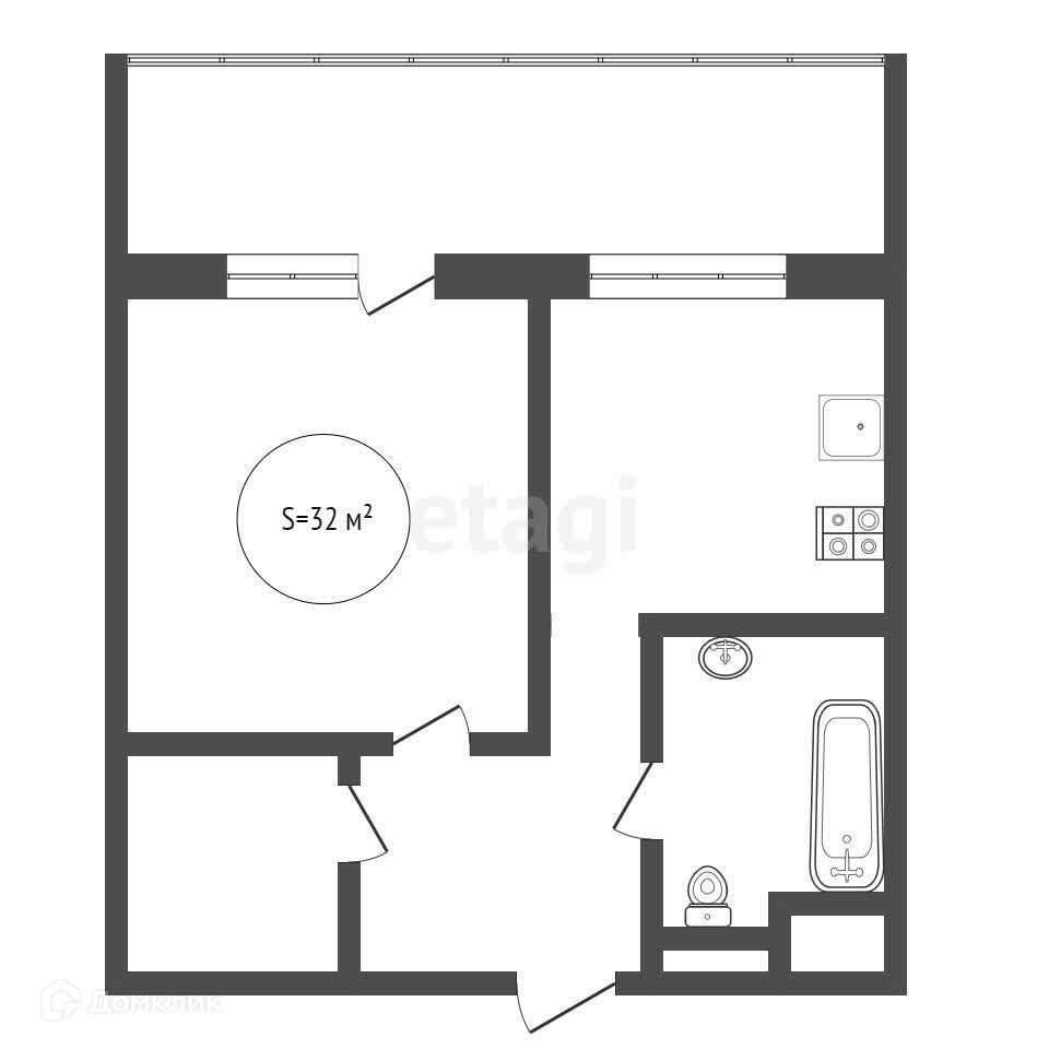 1-комнатная квартира.