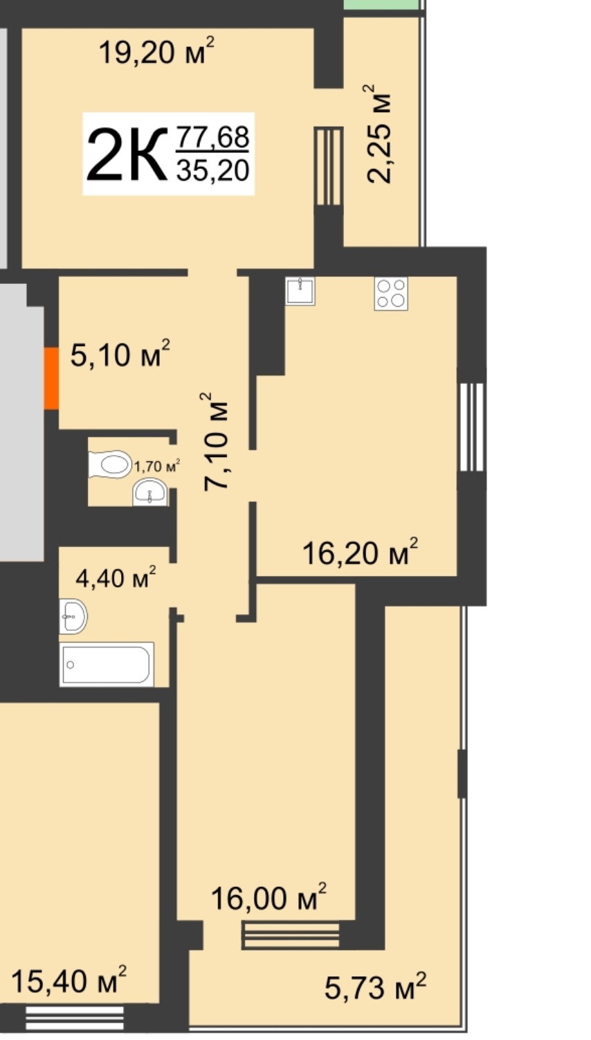 Общая площадь 78 м2