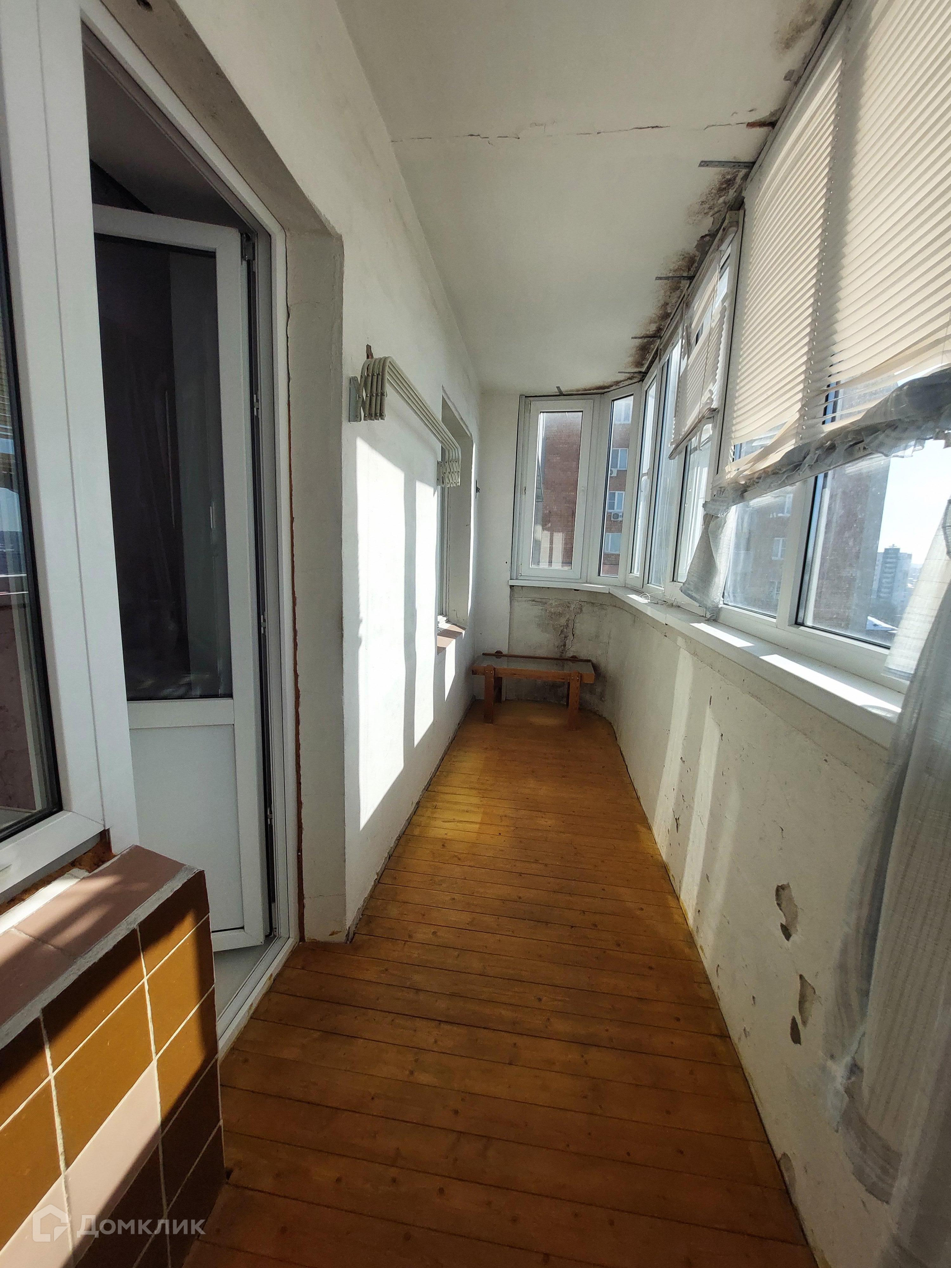 Лоджия - стеклопакеты, большая, на обе комнаты (выход из большой комнаты).