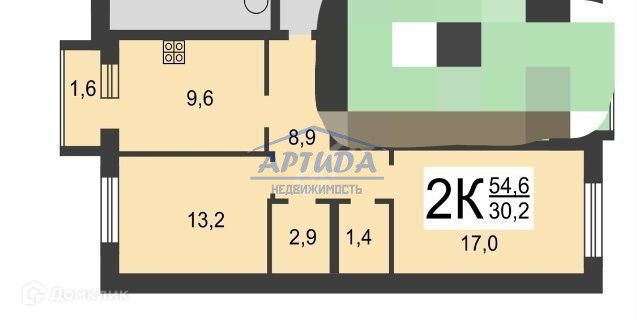 Жилая площадь 28.2 м2