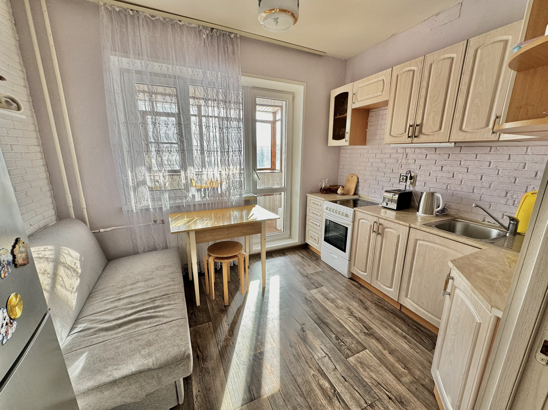 Квартира в хорошем состоянии: окна пластиковые, сан.узел в кафеле, останется кухонный гарнитур и по договоренности шкаф.