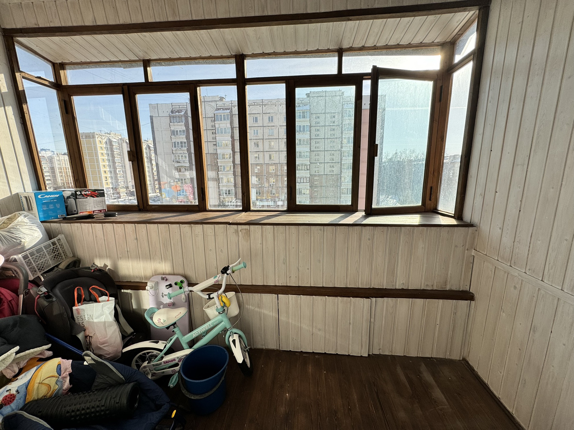 Большой балкон застекленный!