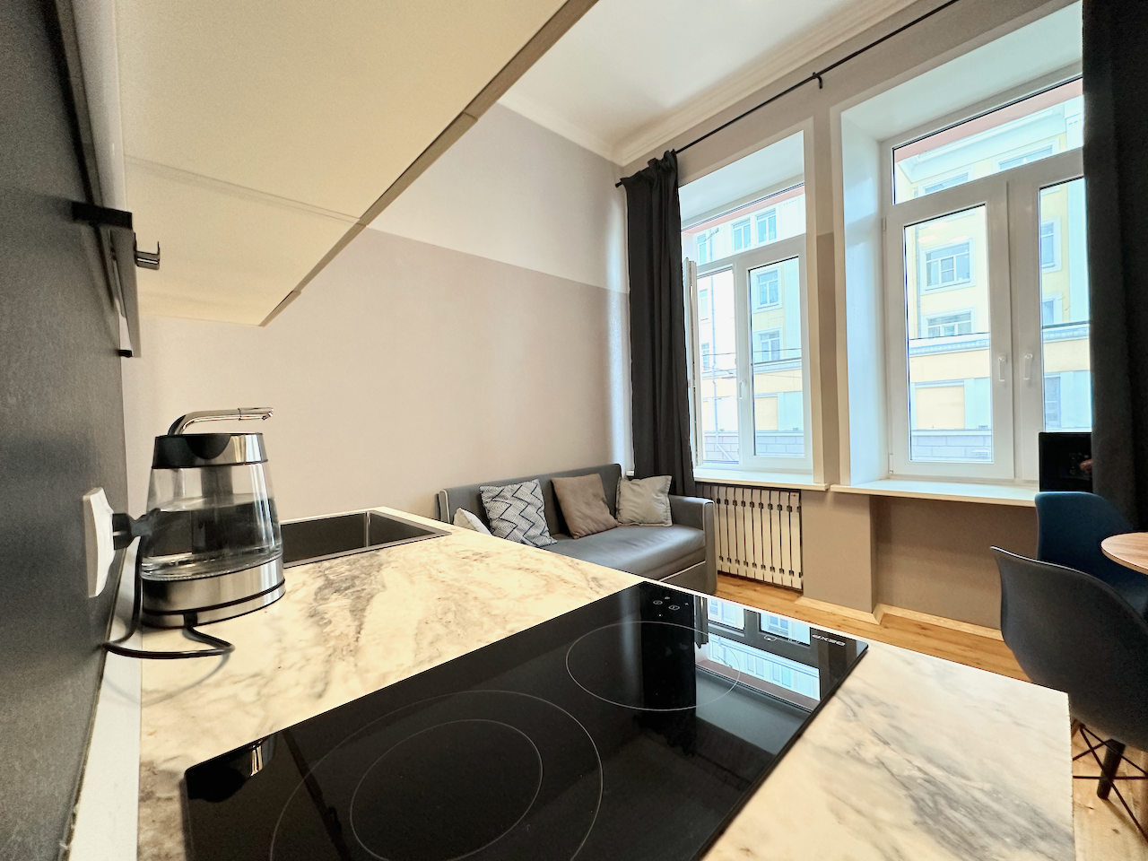 Квартира после капитального ремонта, тёплая, светлая и уютная, каких-либо вложений не требует, полностью готова к комфортному проживанию. Высокие потолки дарят в квартире ещё больше пространства, свободы и воздуха, а большие окна обеспечивают отличную инсоляцию. Антресольный этаж дарит квартире ещё дополнительные квадраты полезной площади.