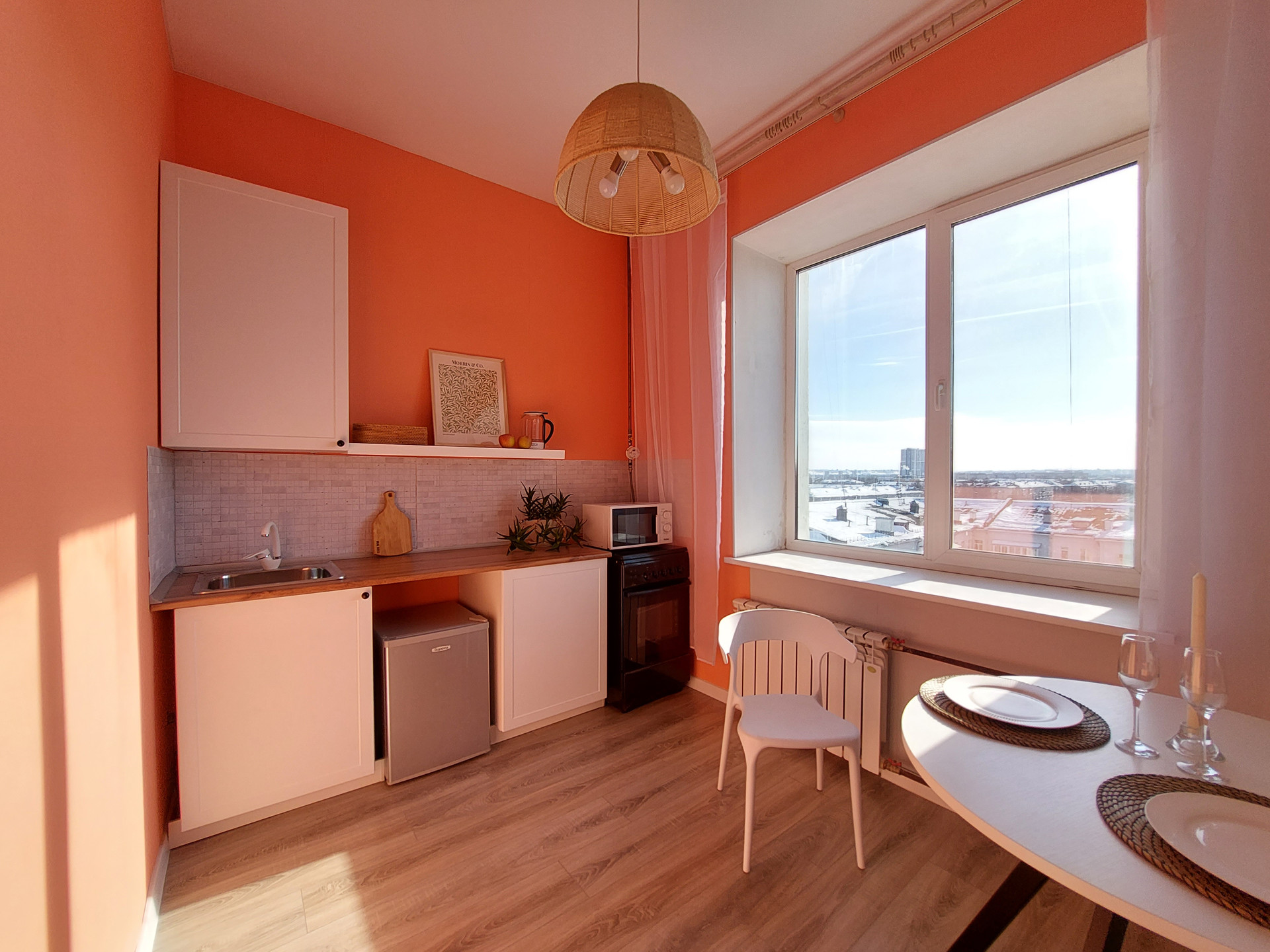 Окна выходят на две противоположные стороны, из них открывается великолепный панорамный вид на столицу закатов!