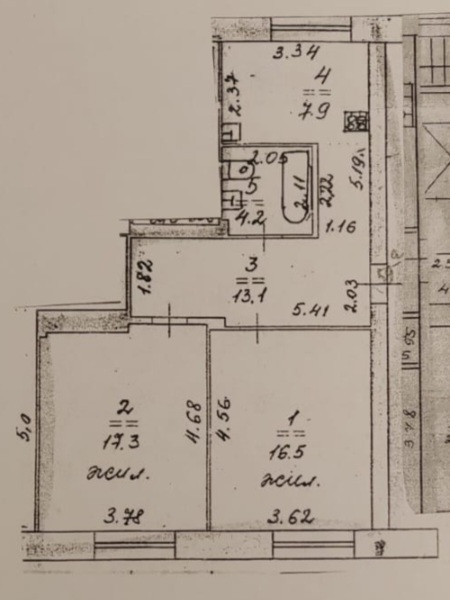 Две большие и изолированные комнаты -17.3 и 16.5 кв.м;