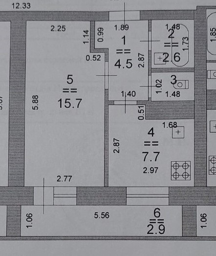 Площадь кухни 7.7 м2