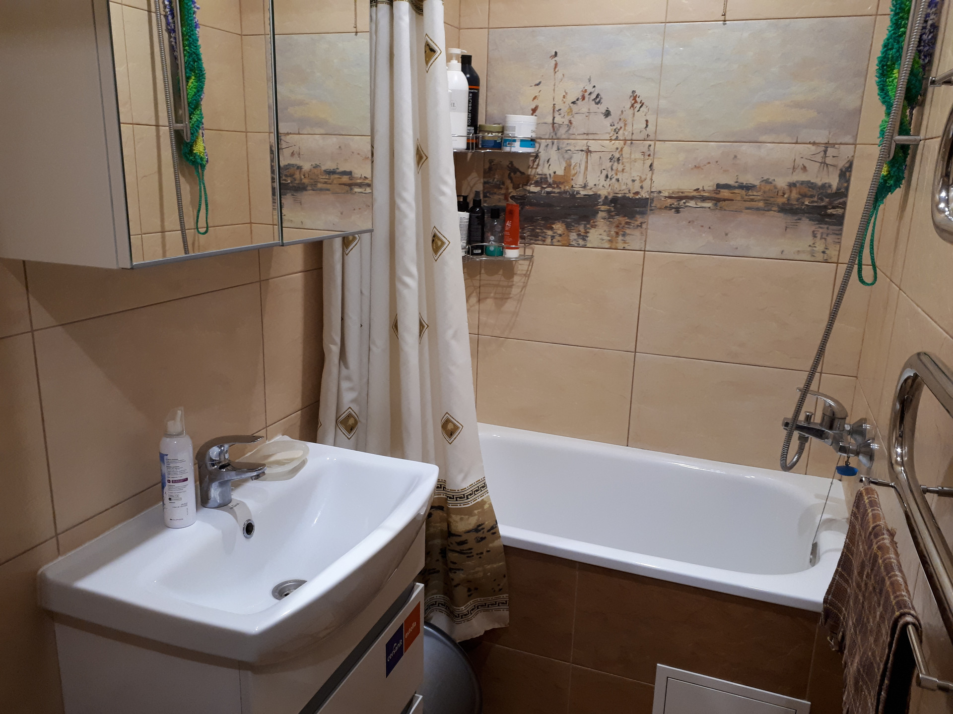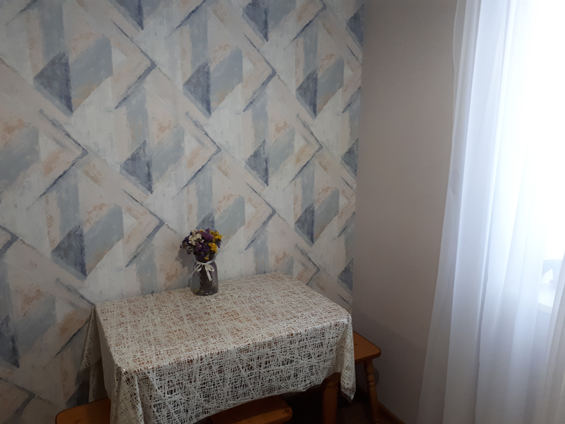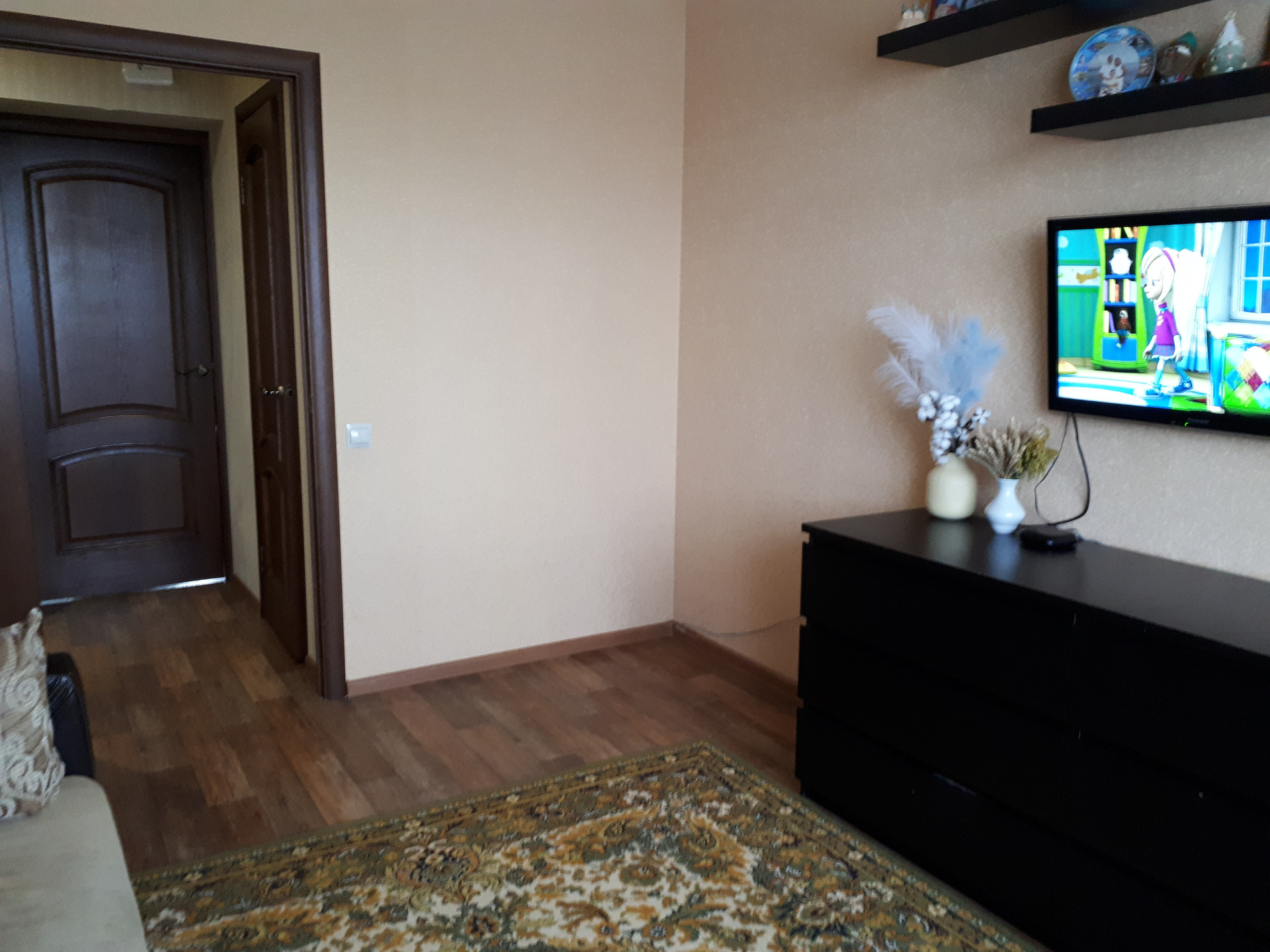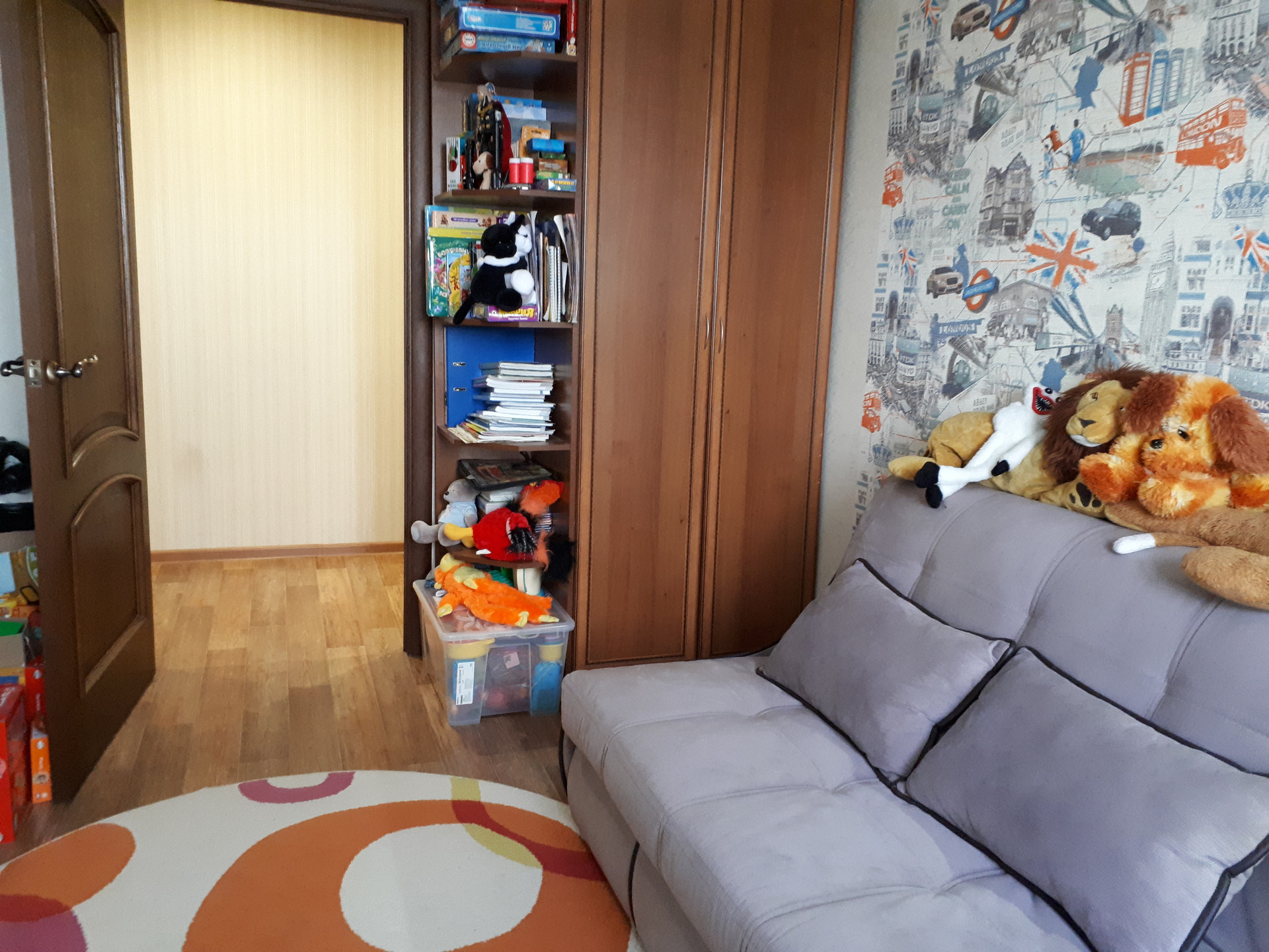 Состояние хорошее. Выровнены полы, стены, заменена проводка, межкомнатные двери, качественные обои и напольное покрытие. Сан/узел раздельный, в плитке. В квартире остается кухонный гарнитур. В подъезде новый лифт, двор большой, с детской площадкой, тихий, зеленый.