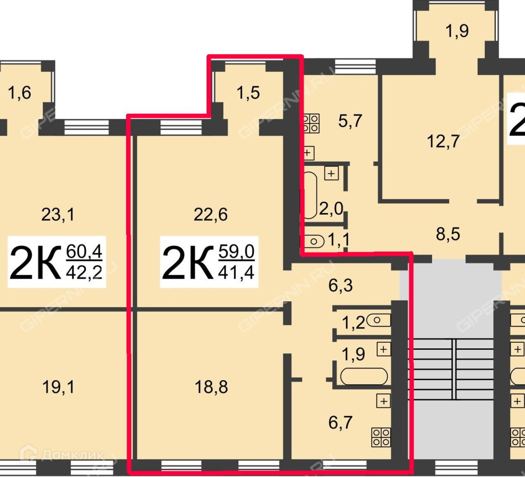 Общая площадь 59 м2