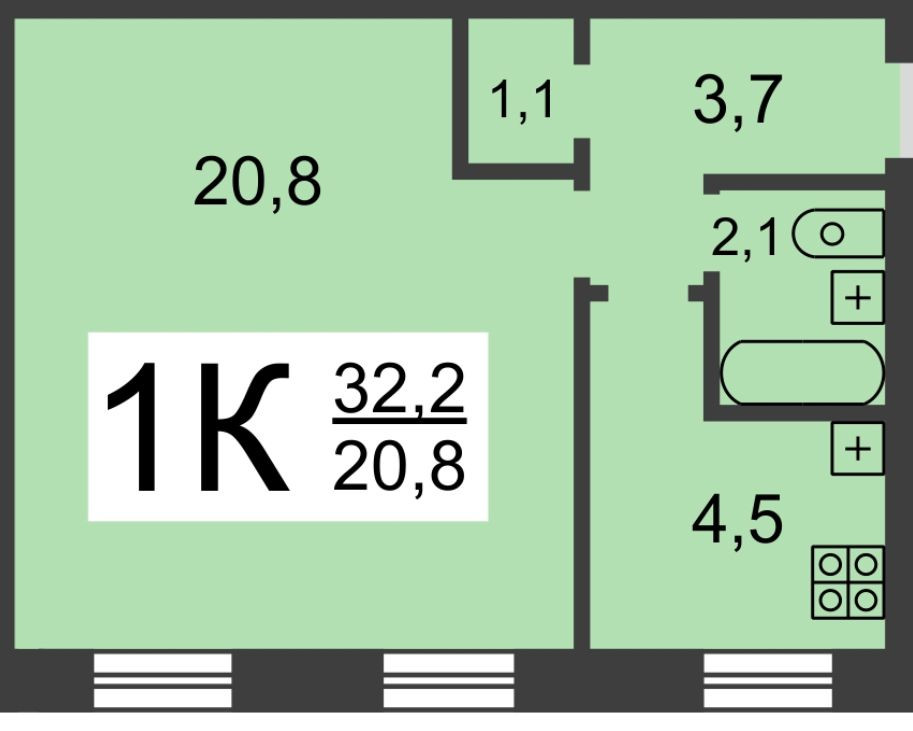 Общая площадь 32.2 м2