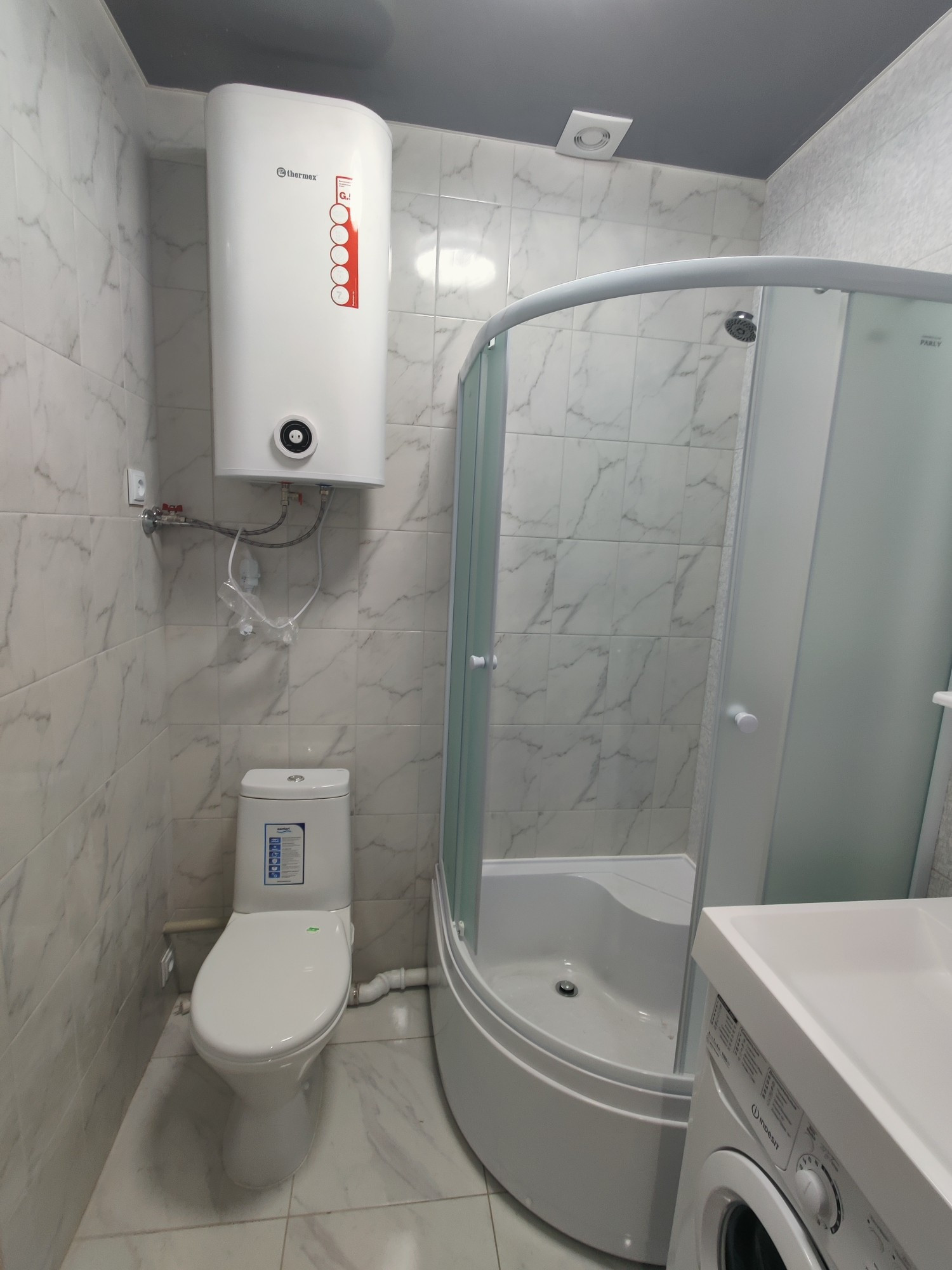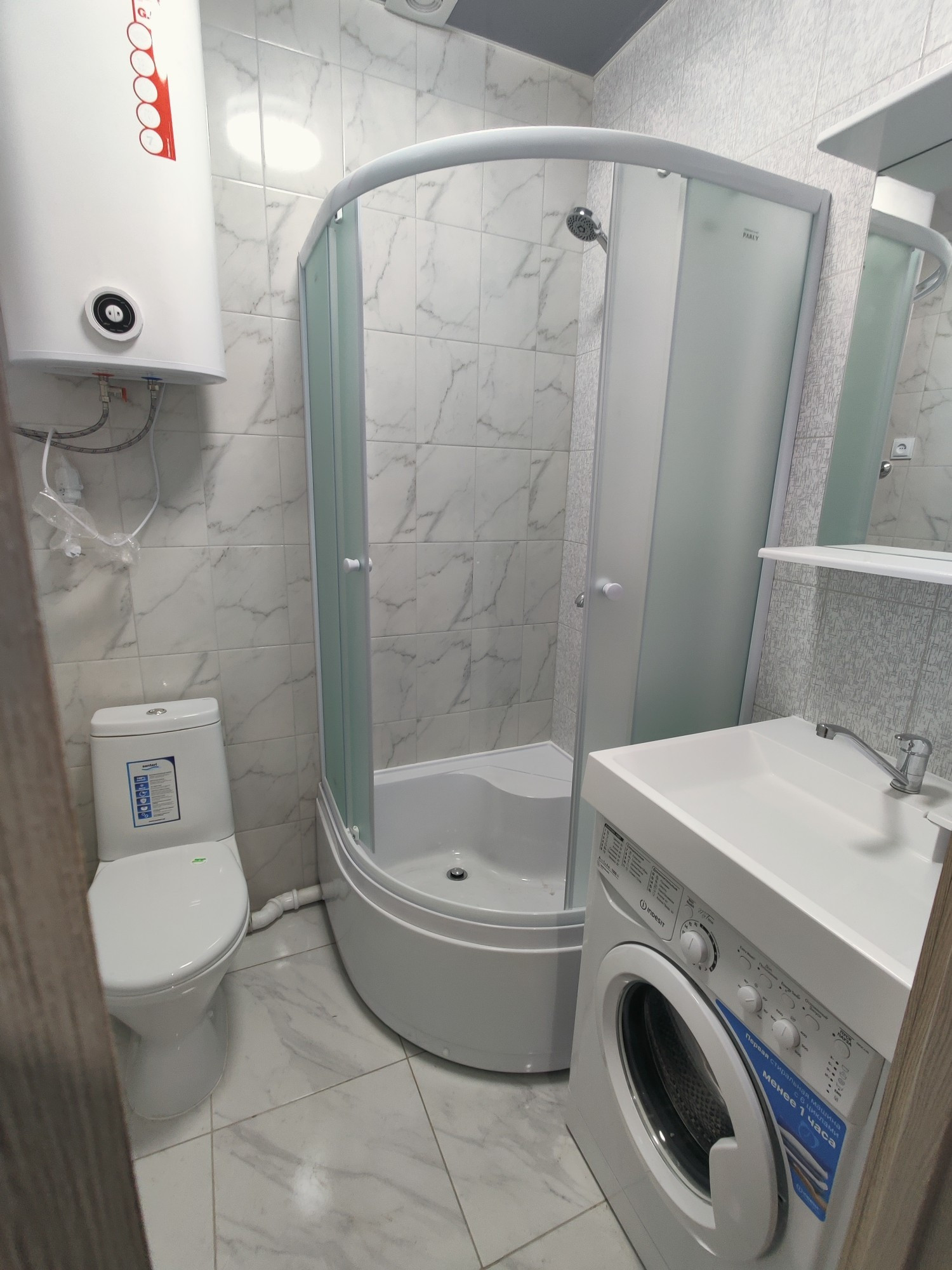 Хороший ремонт. Душевой уголок, стиральная машина, вытяжная вентиляция, встроенная кухня, электропроводка, сантехника - всё новое.