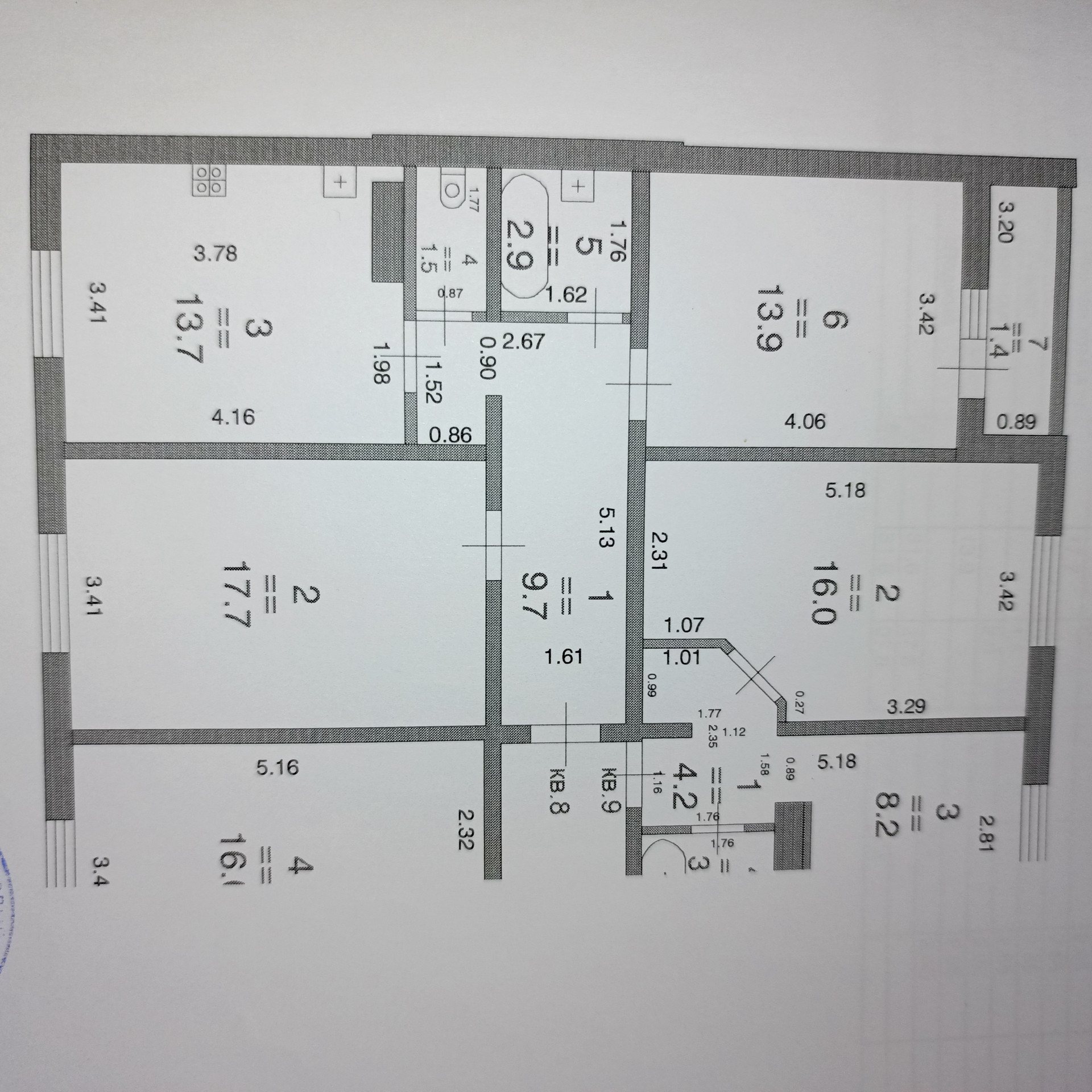 Жилая площадь 31.6 м2