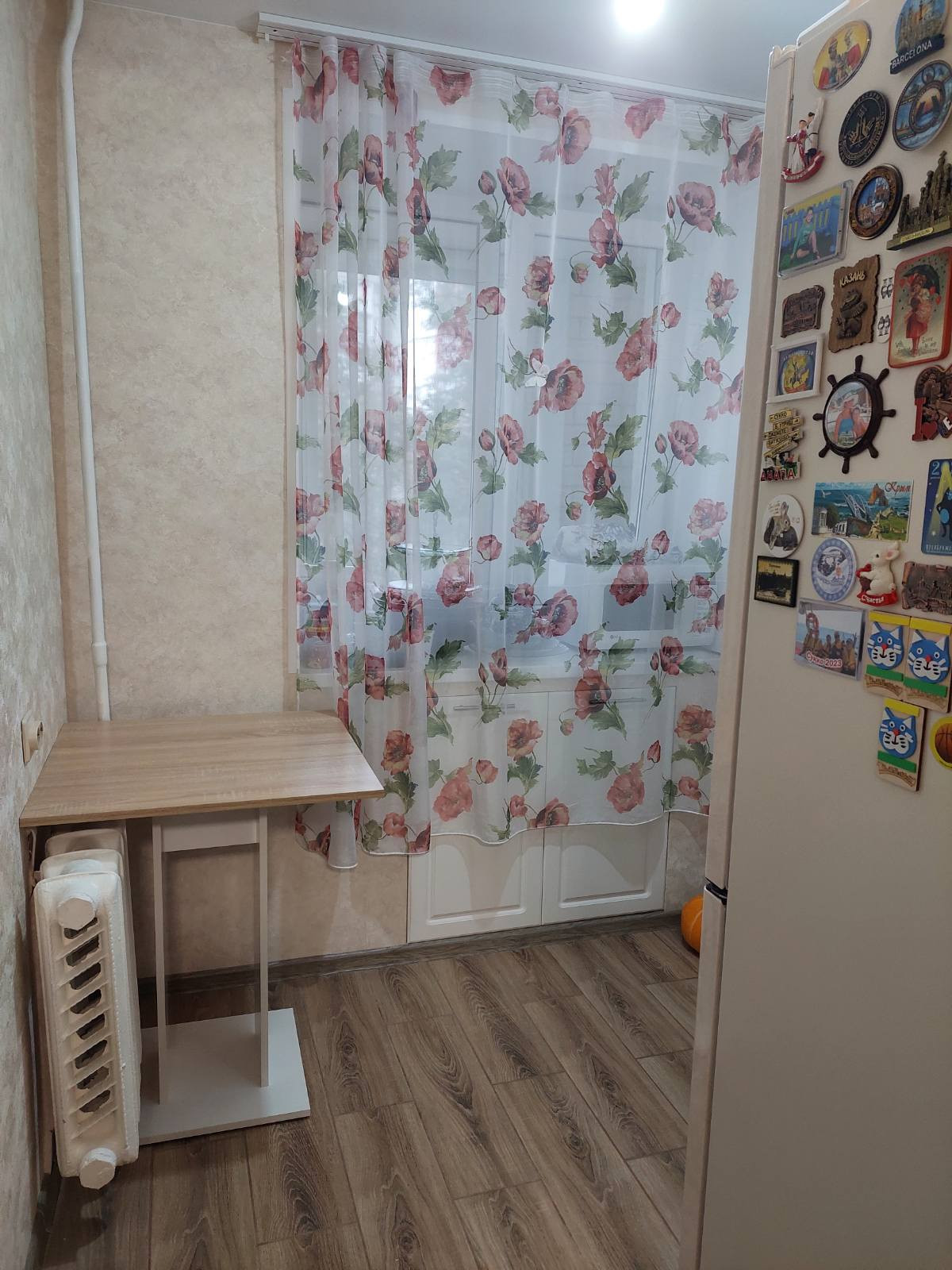 Балкон 3 кв.м. застеклён (раздвижные окна, распашная двойная дверь)